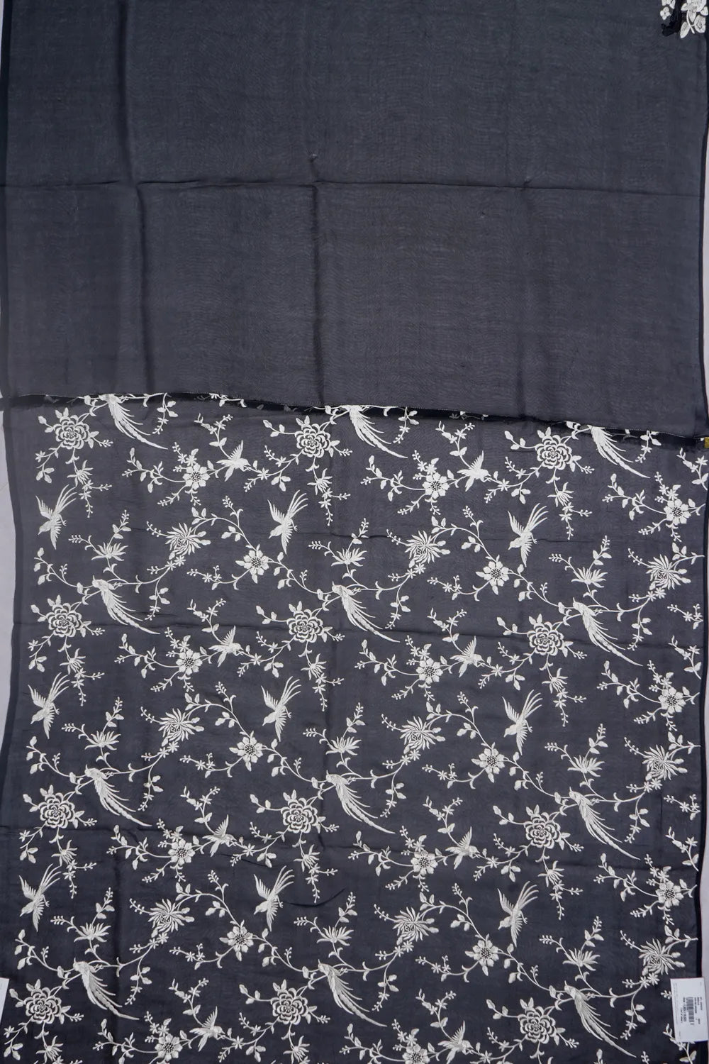 Accompanied by a blouse enhanced with self floral embroidery and charming bird motifs, this ensemble creates a beautifully coordinated look