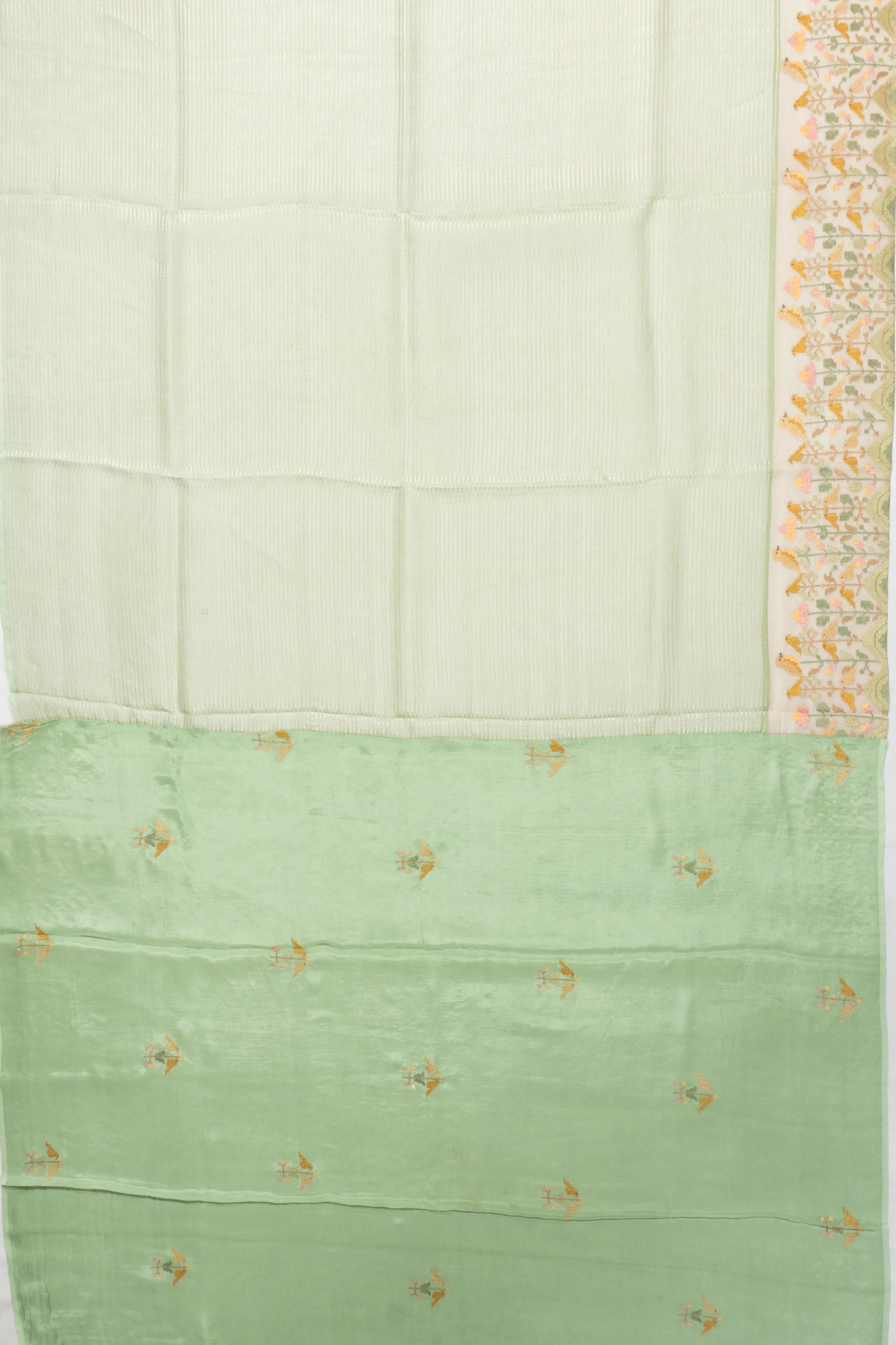Organza Horizontal Lines Pastel Green Saree With Embroidery Border