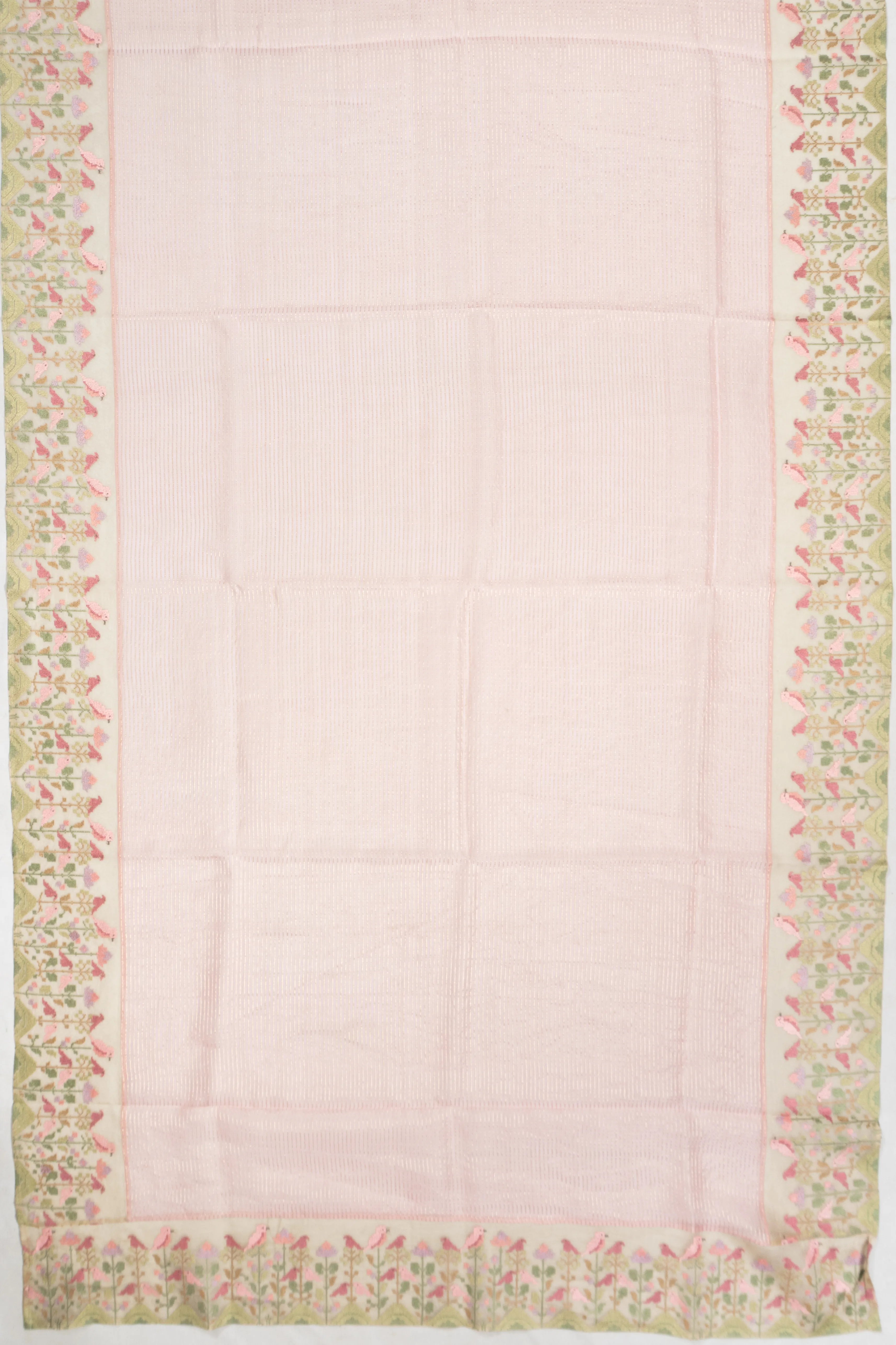 Organza Horizontal Lines Peach Saree With Embroidery Border