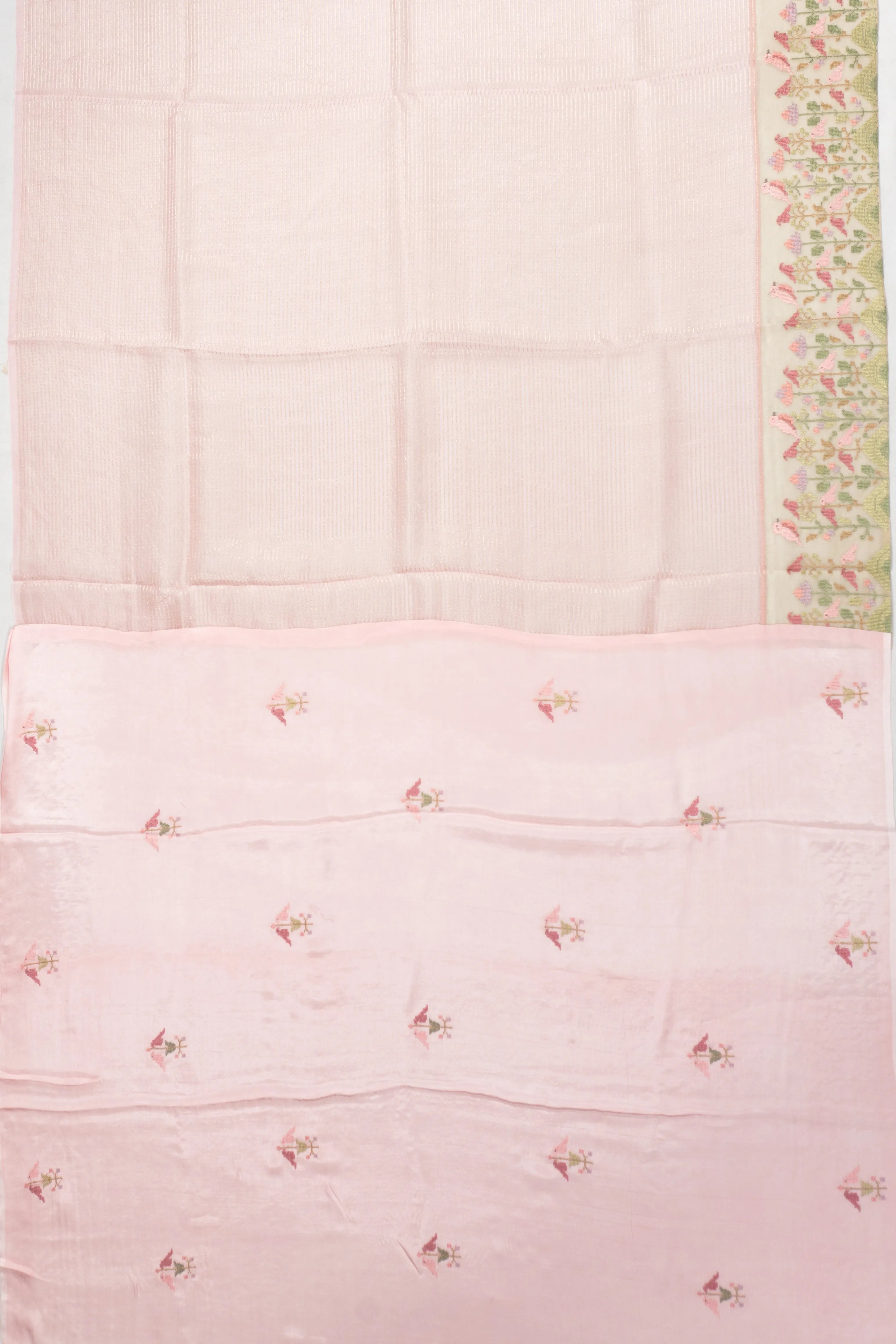 Paired with a self floral embroidery butta blouse, this saree offers a cohesive look that speaks to timeless grace