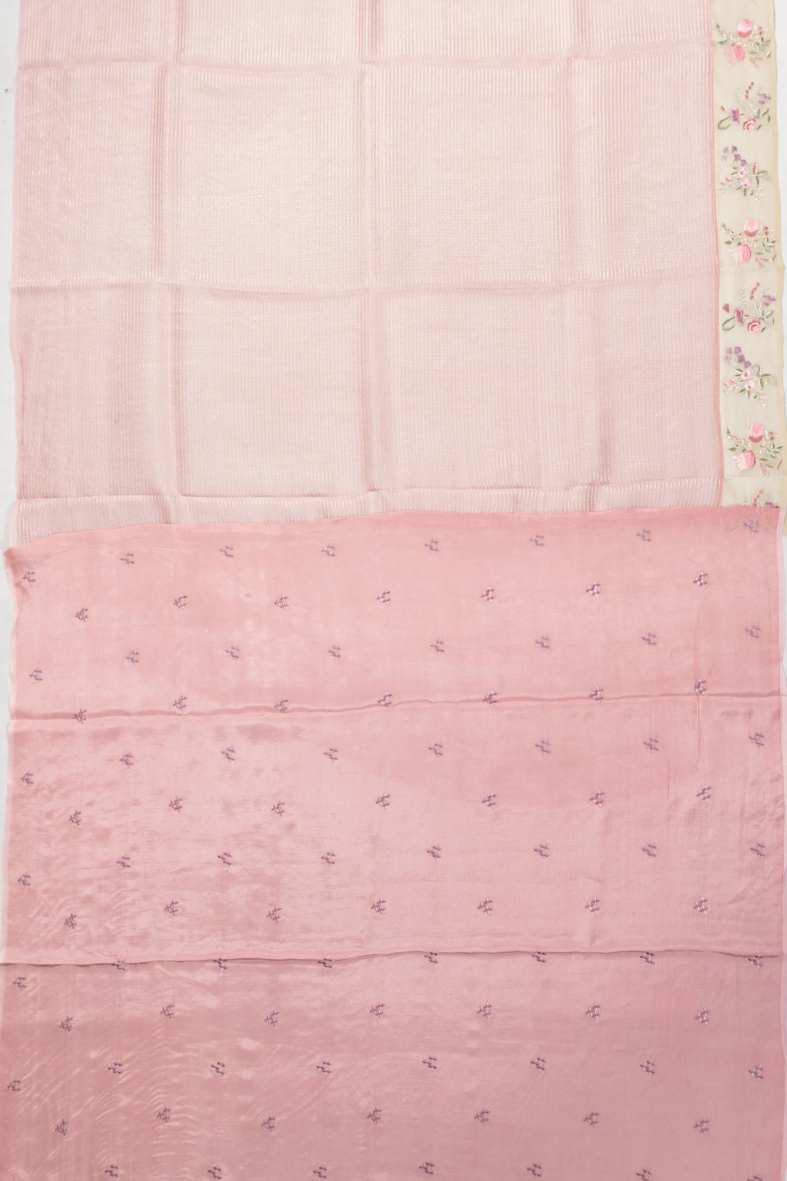 The self pallu and self floral embroidery butta blouse lend a harmonious and refined touch, crafting an ensemble that is both unified and captivating