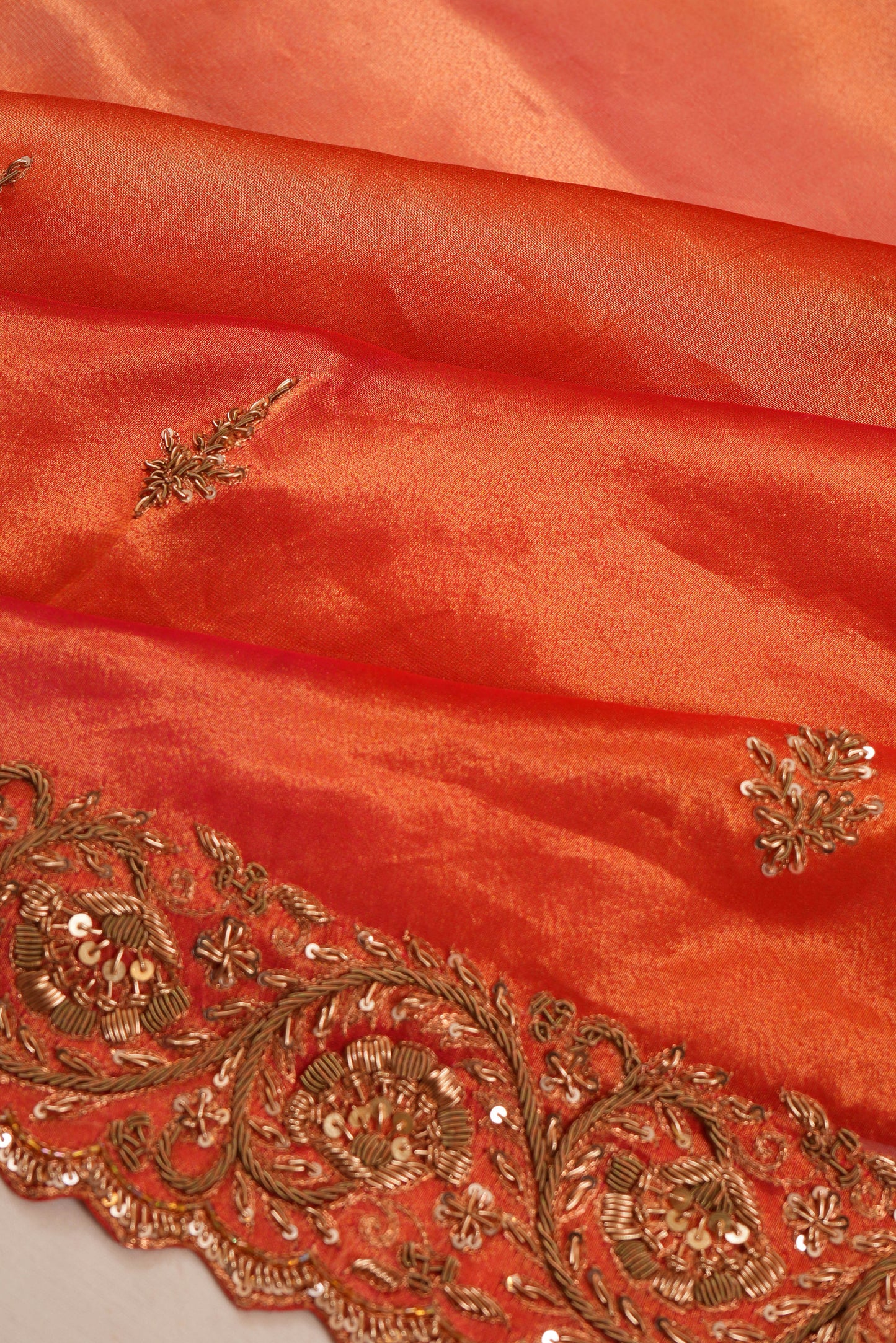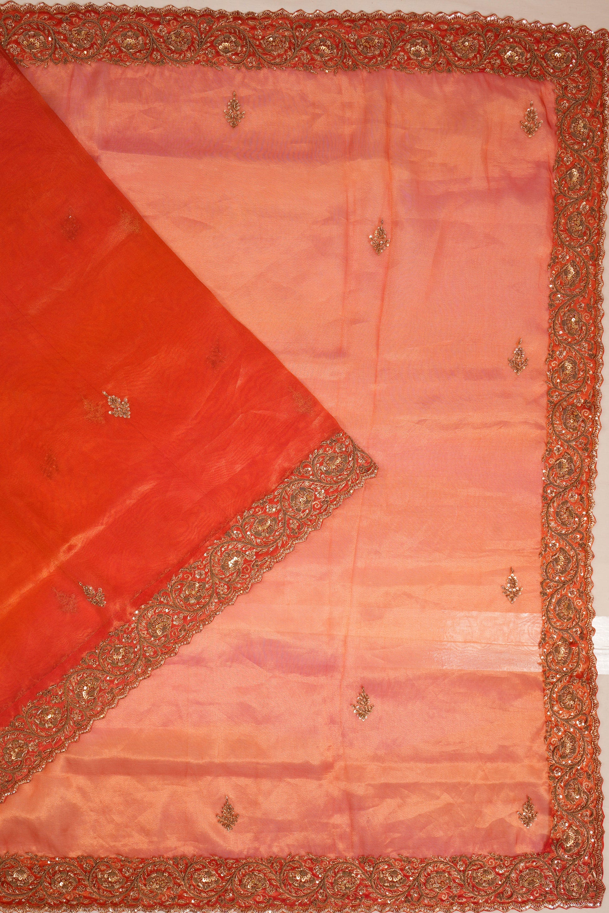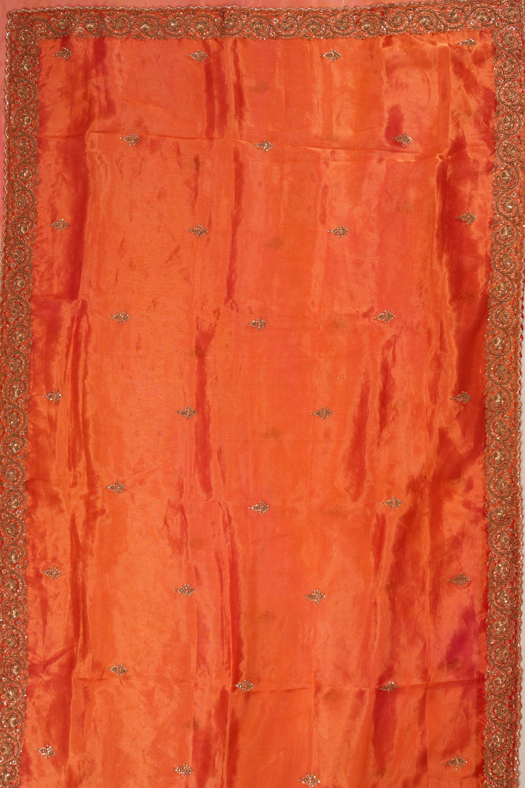 Organza Tissue Butta Orange Saree With Zardosi Work And Scallop Border