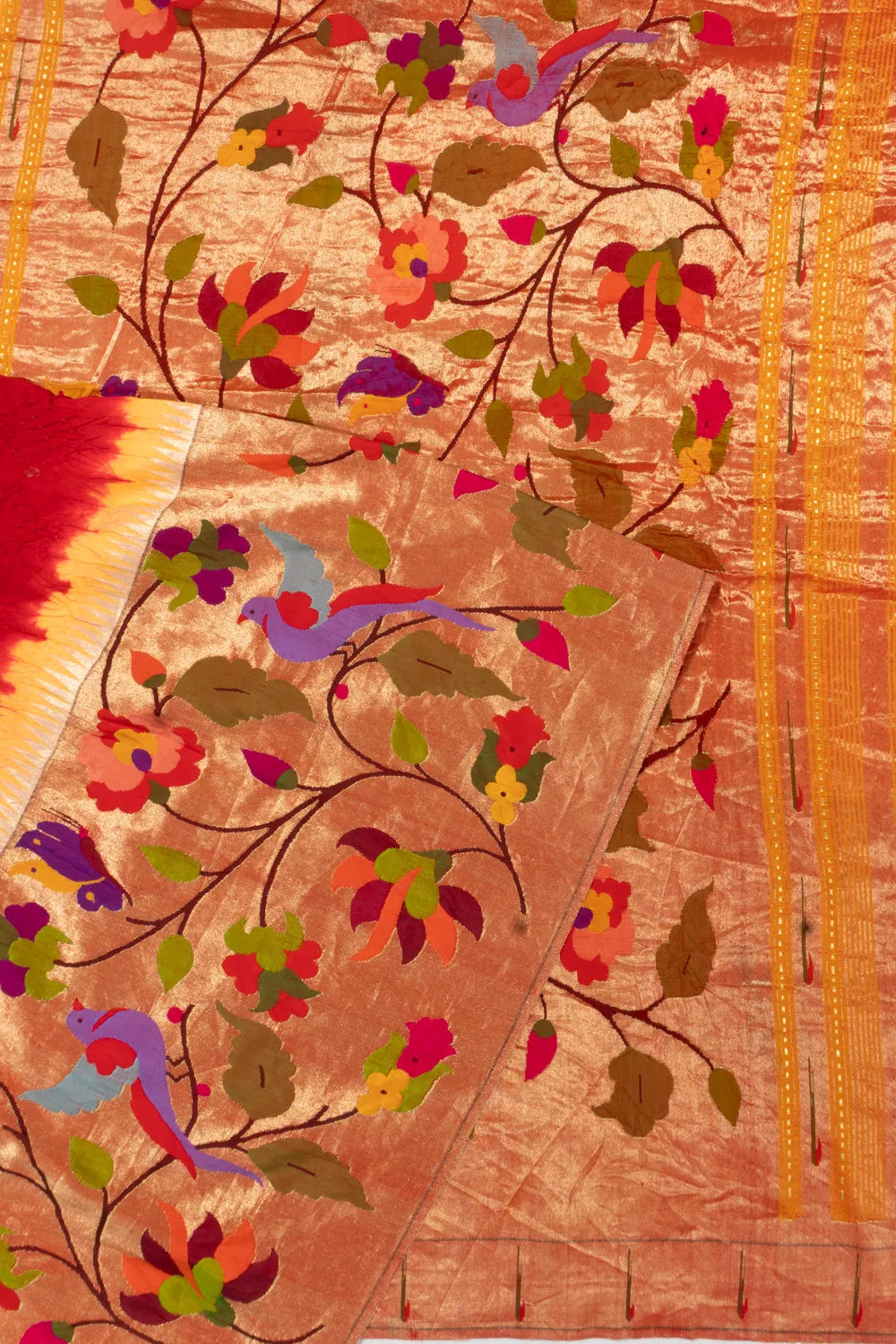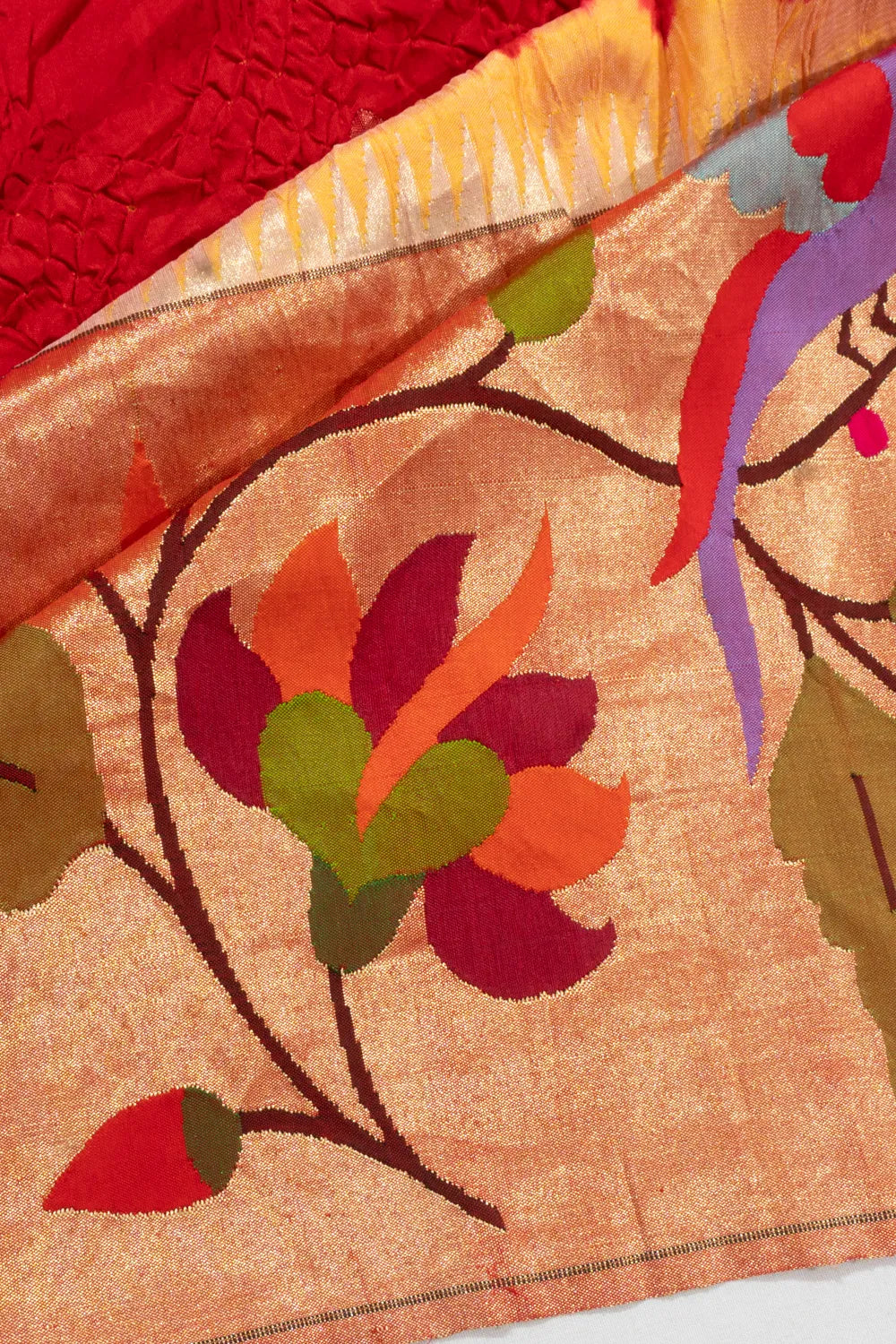 Paithani Silk Bandhani Butta Red Saree With Big Border