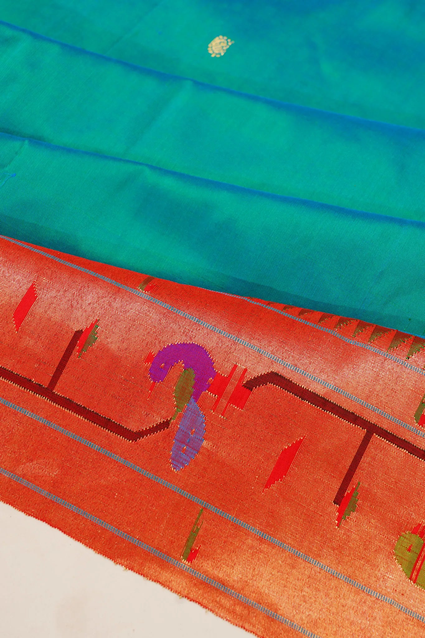 Paithani Silk Butta Dual Tone Green And Blue Saree With Akruthi Border