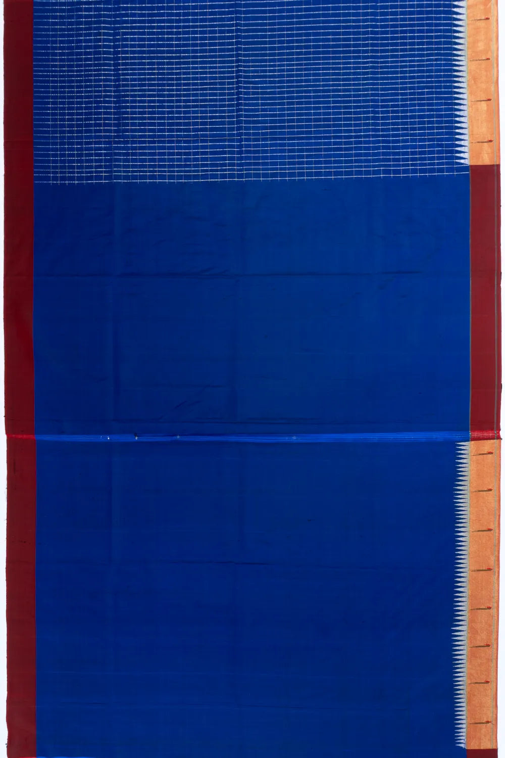 Paithani Silk Checks Royal Blue Saree With Single Muniya Border