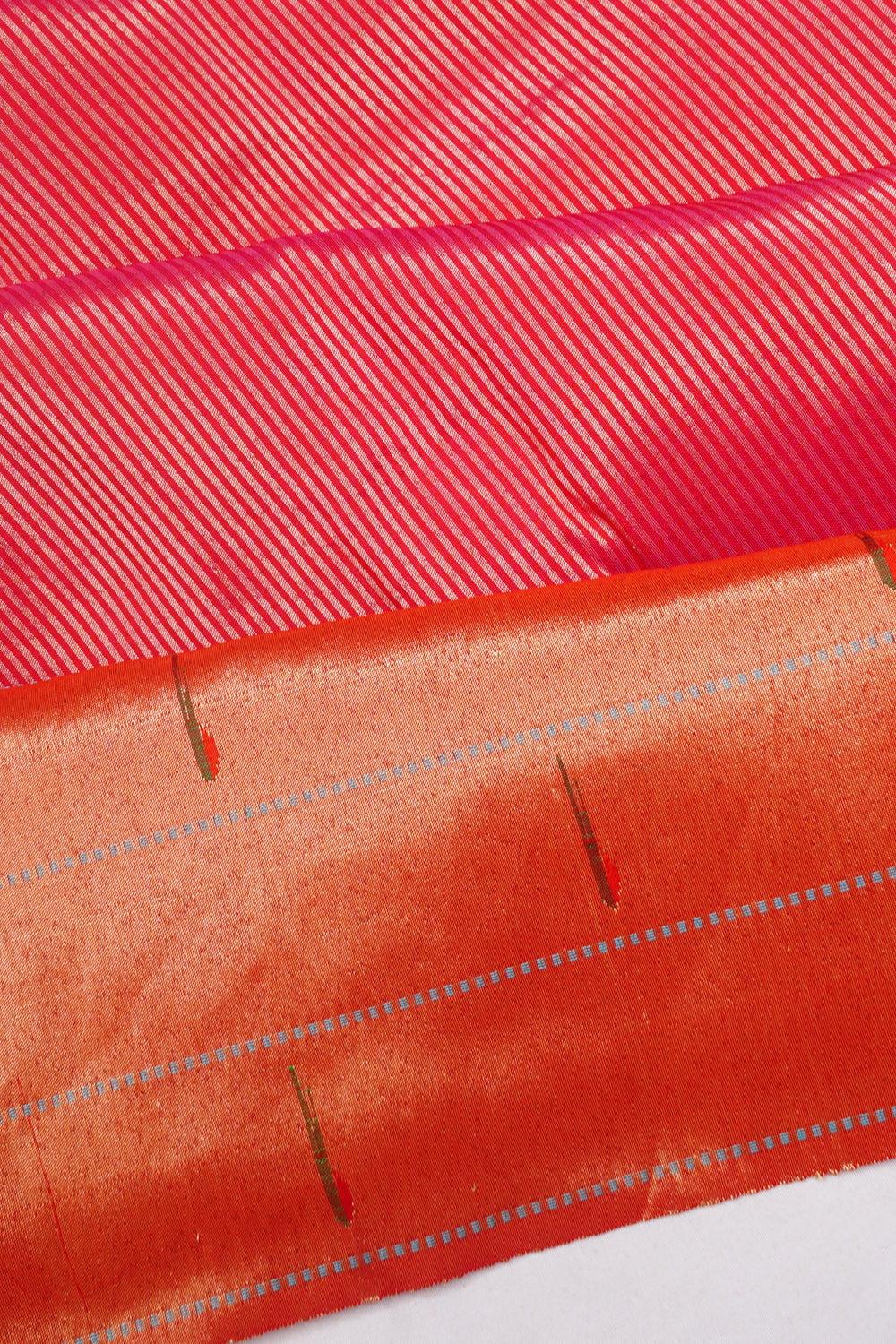 Paithani Silk Lines Red Saree With Triple Muniya Border