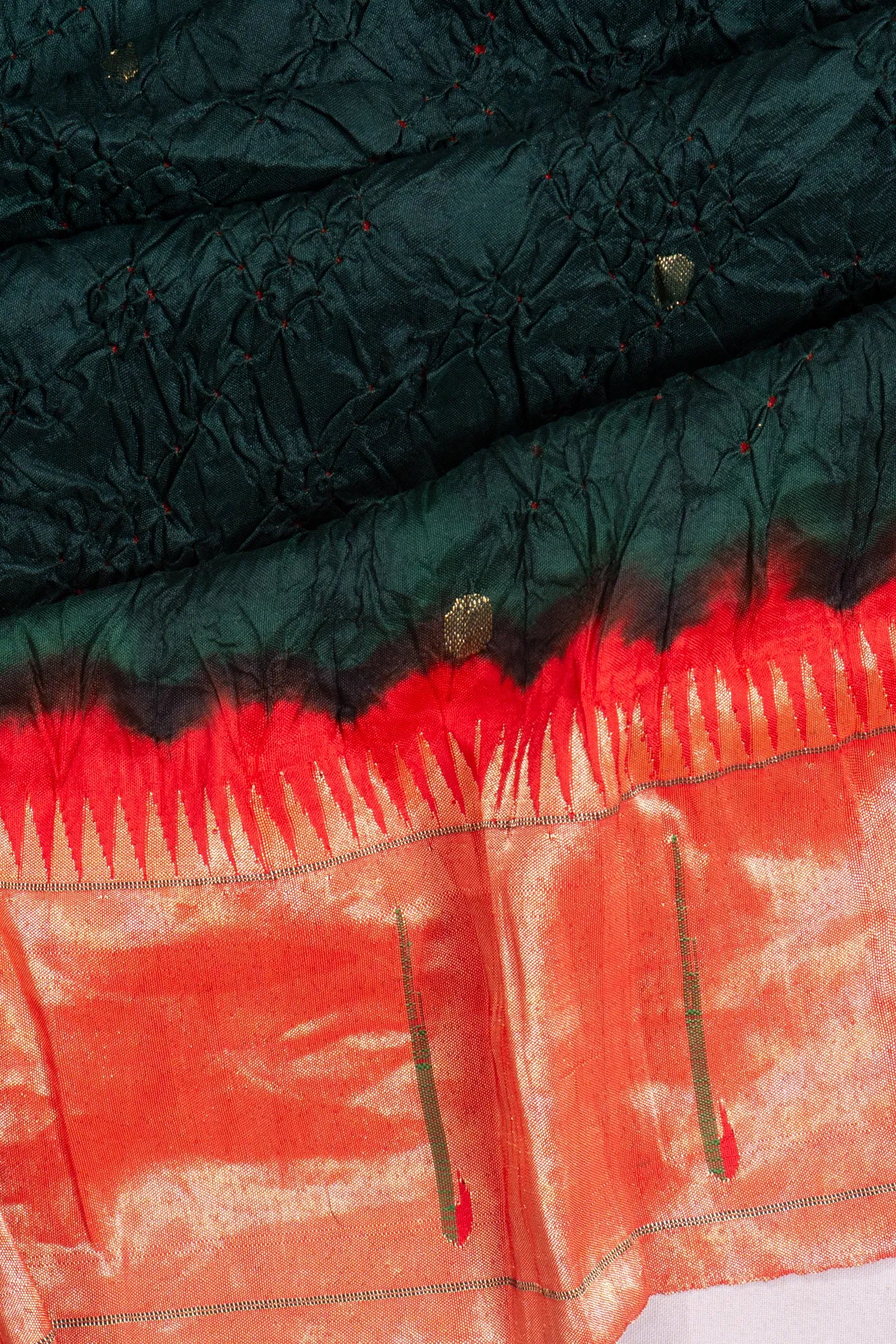 Paithani Silk X Bandhani Butta Bottle Green Saree With Single Muniya Border