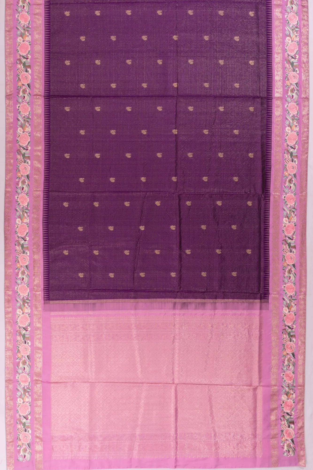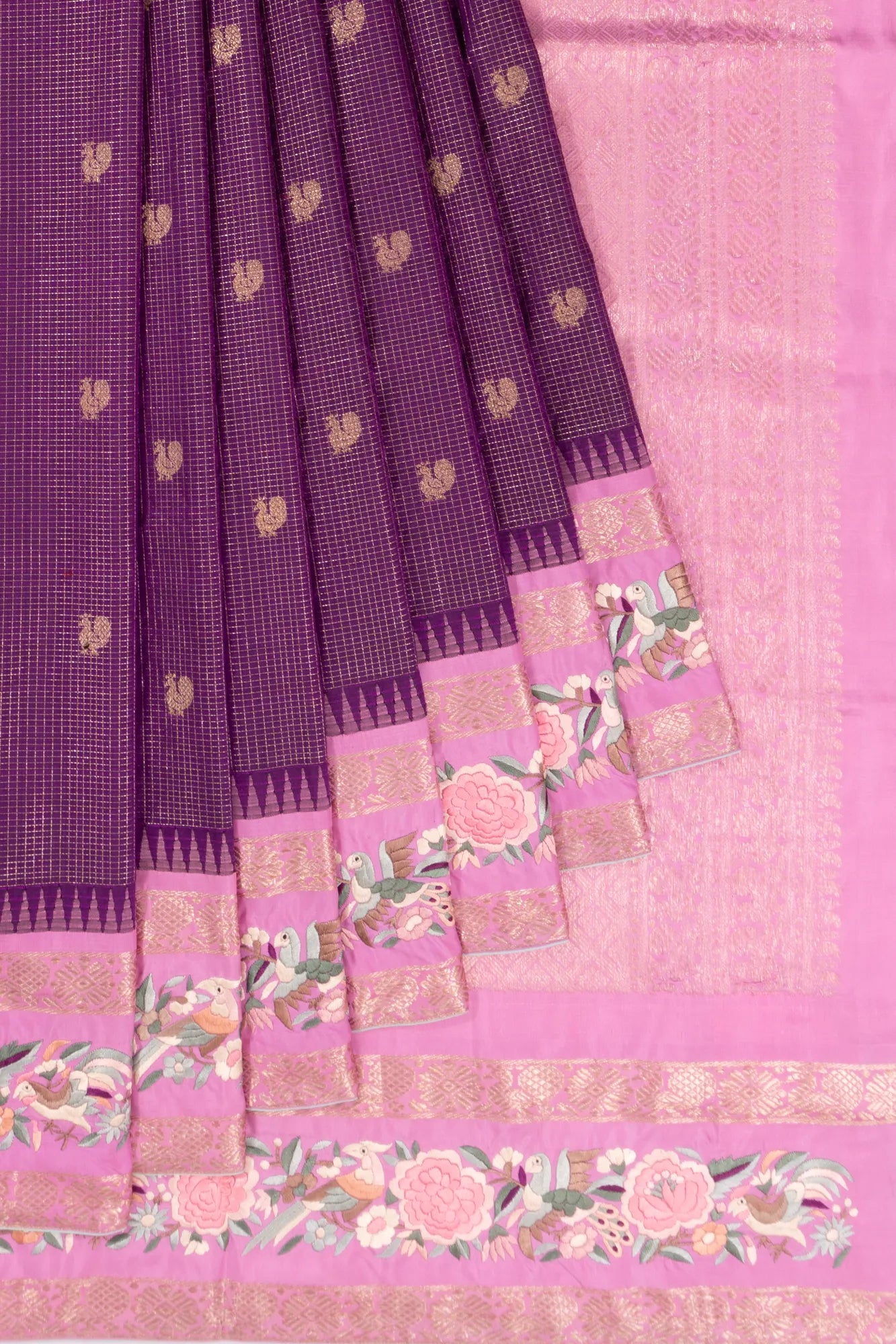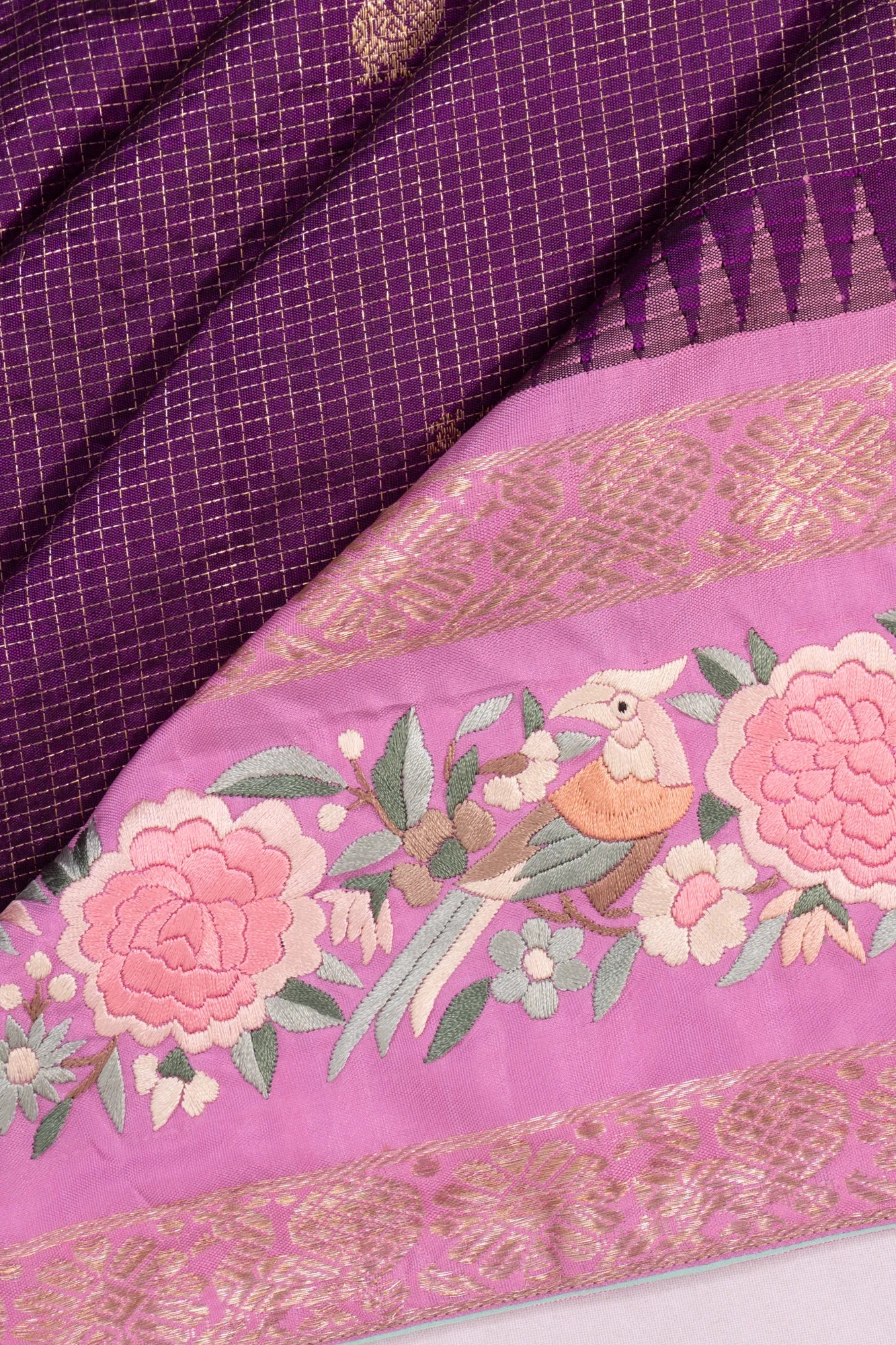 Parsi Gara X Kanchipuram Silk Checks And Butta Purple Saree
