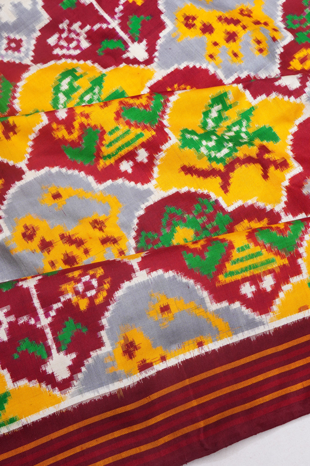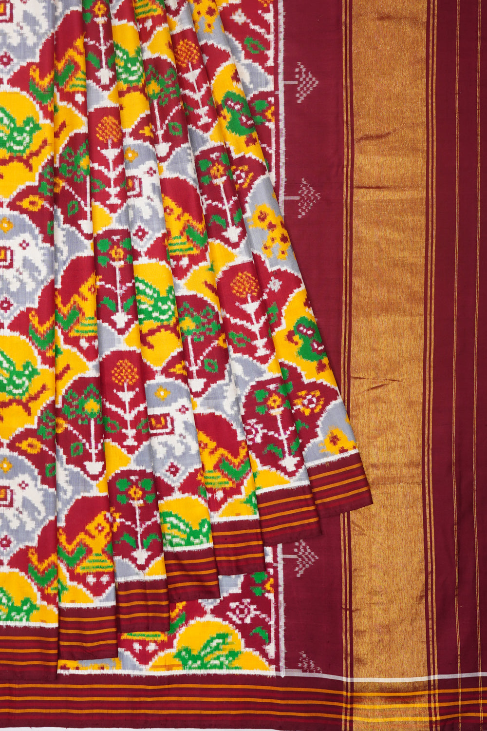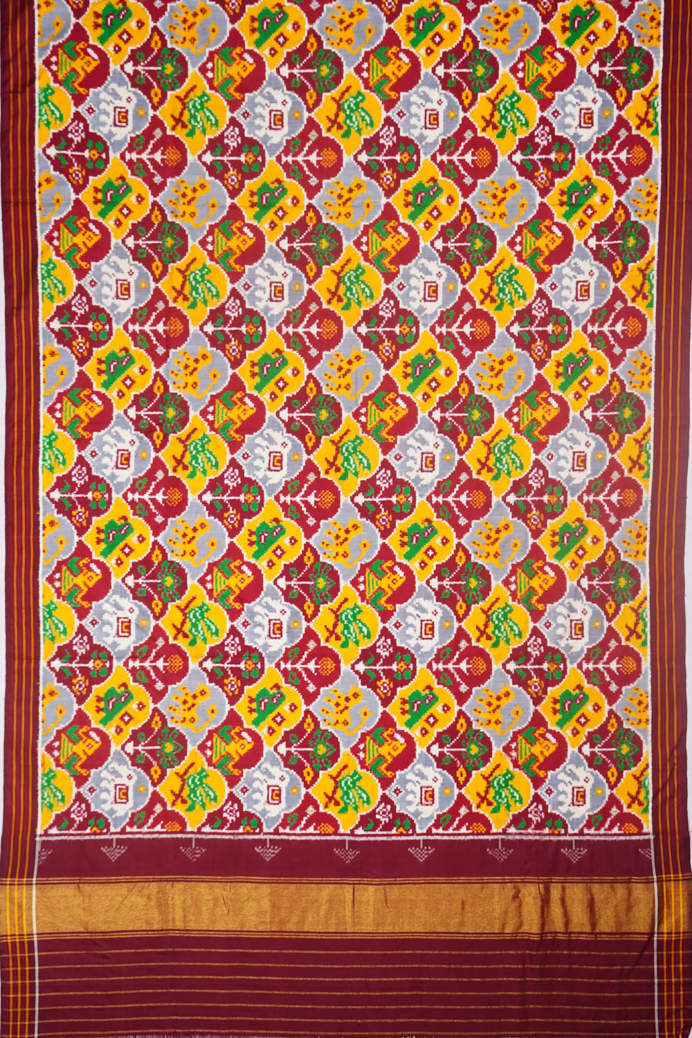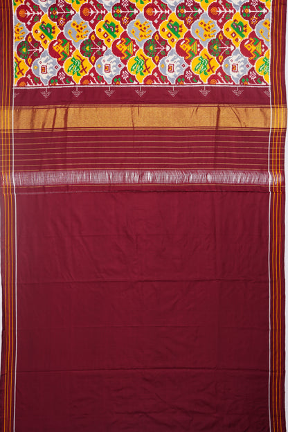 Patan Patola Silk Double Ikat 8 Figure Grey And Maroon Saree