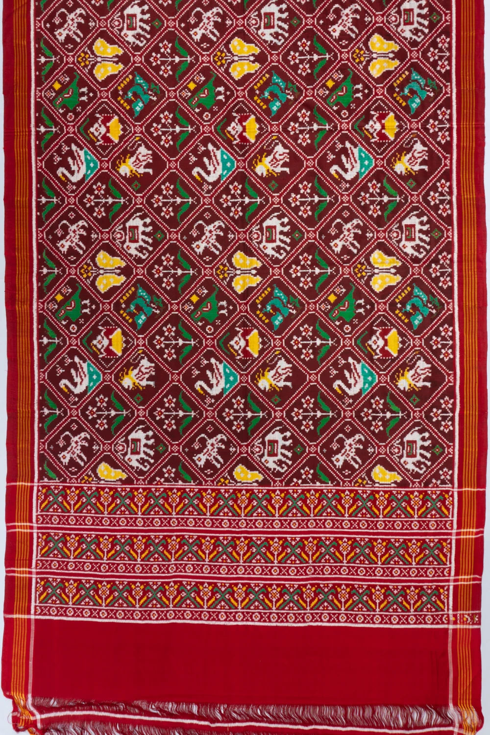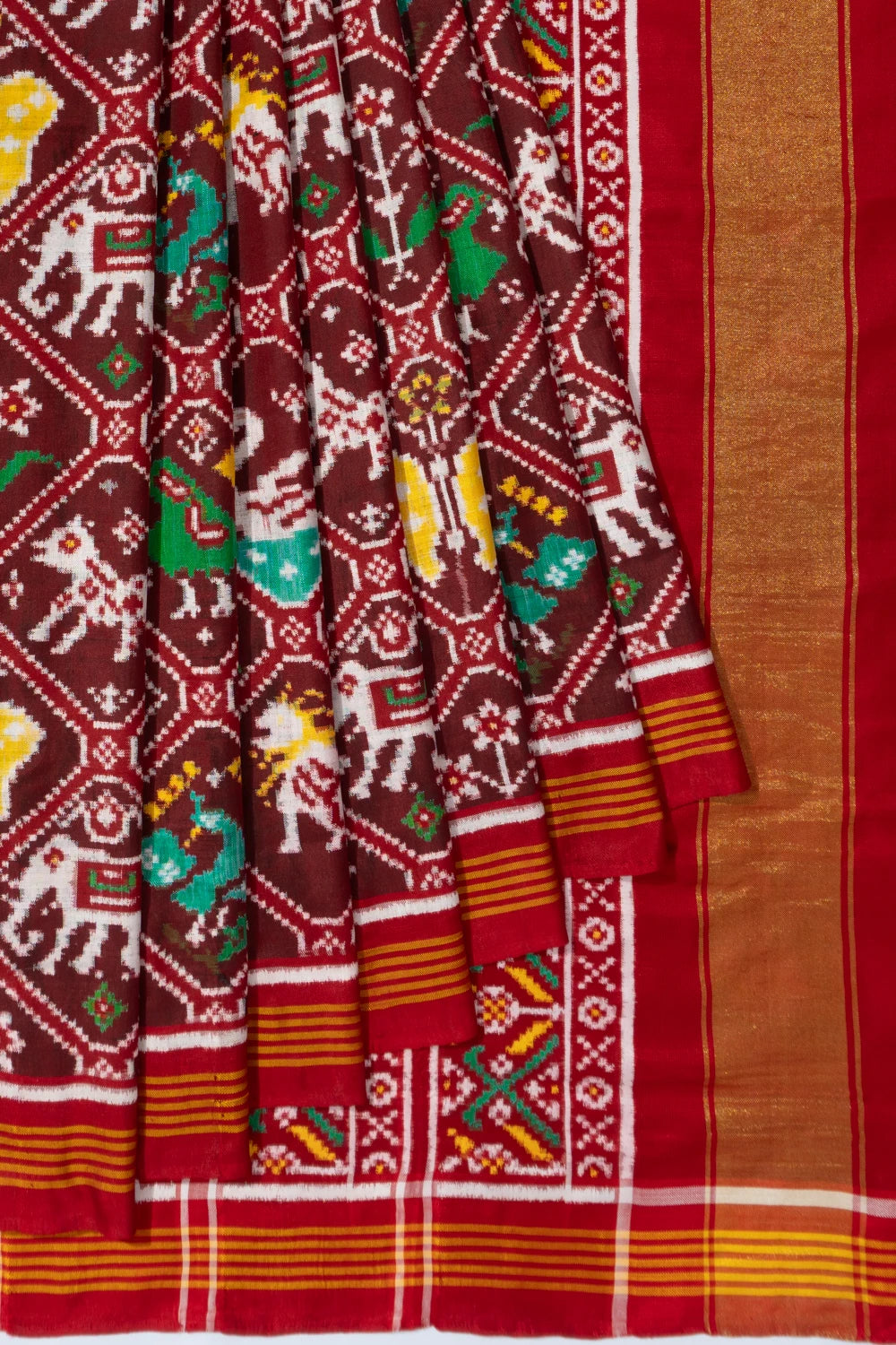 Patan Patola Silk Double Ikat 9 Figure Brown Saree