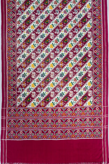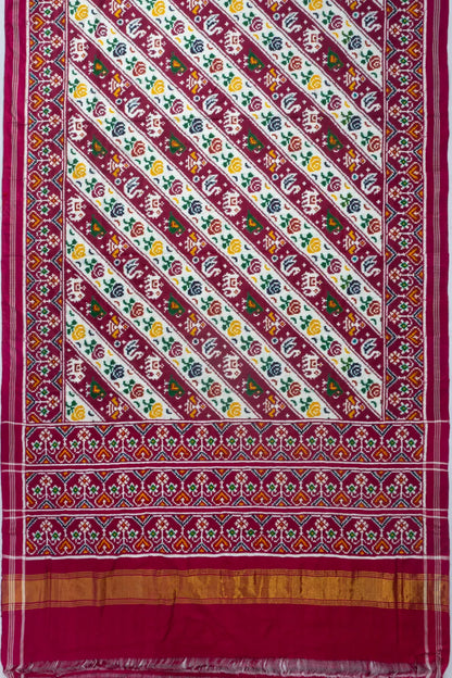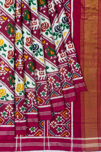 Patan Patola Silk Double Ikat White And Purple Saree