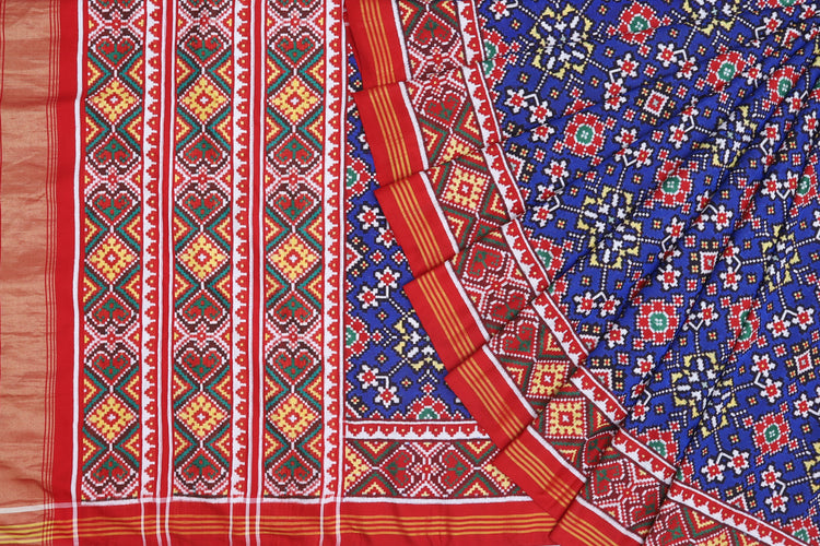 Patan Patola Silk Ikat Navaratna Blue Saree