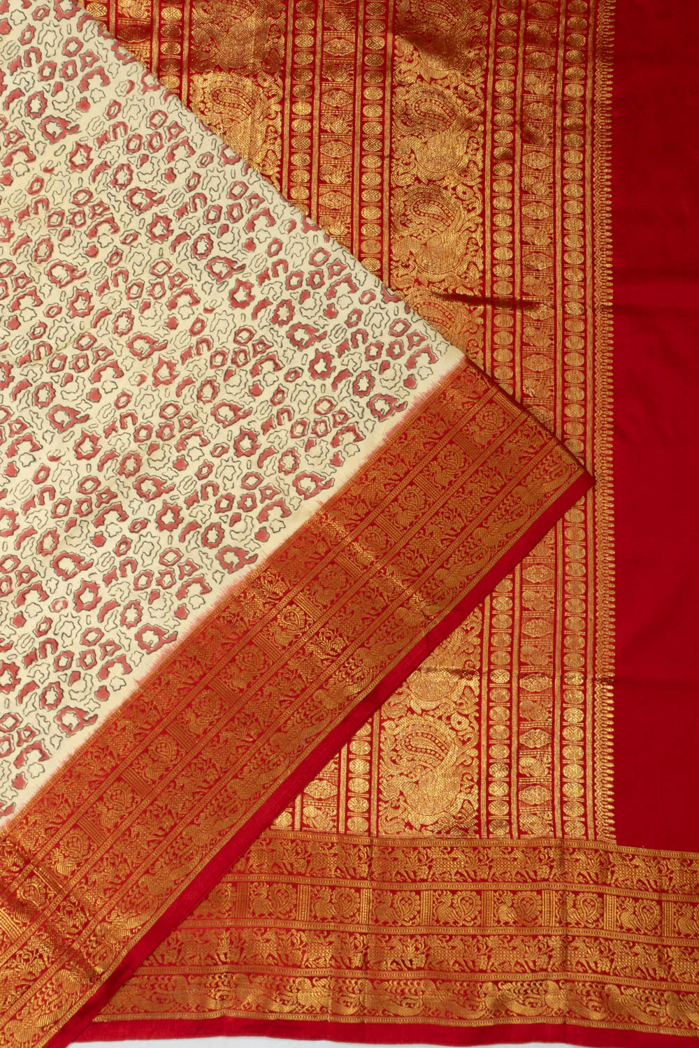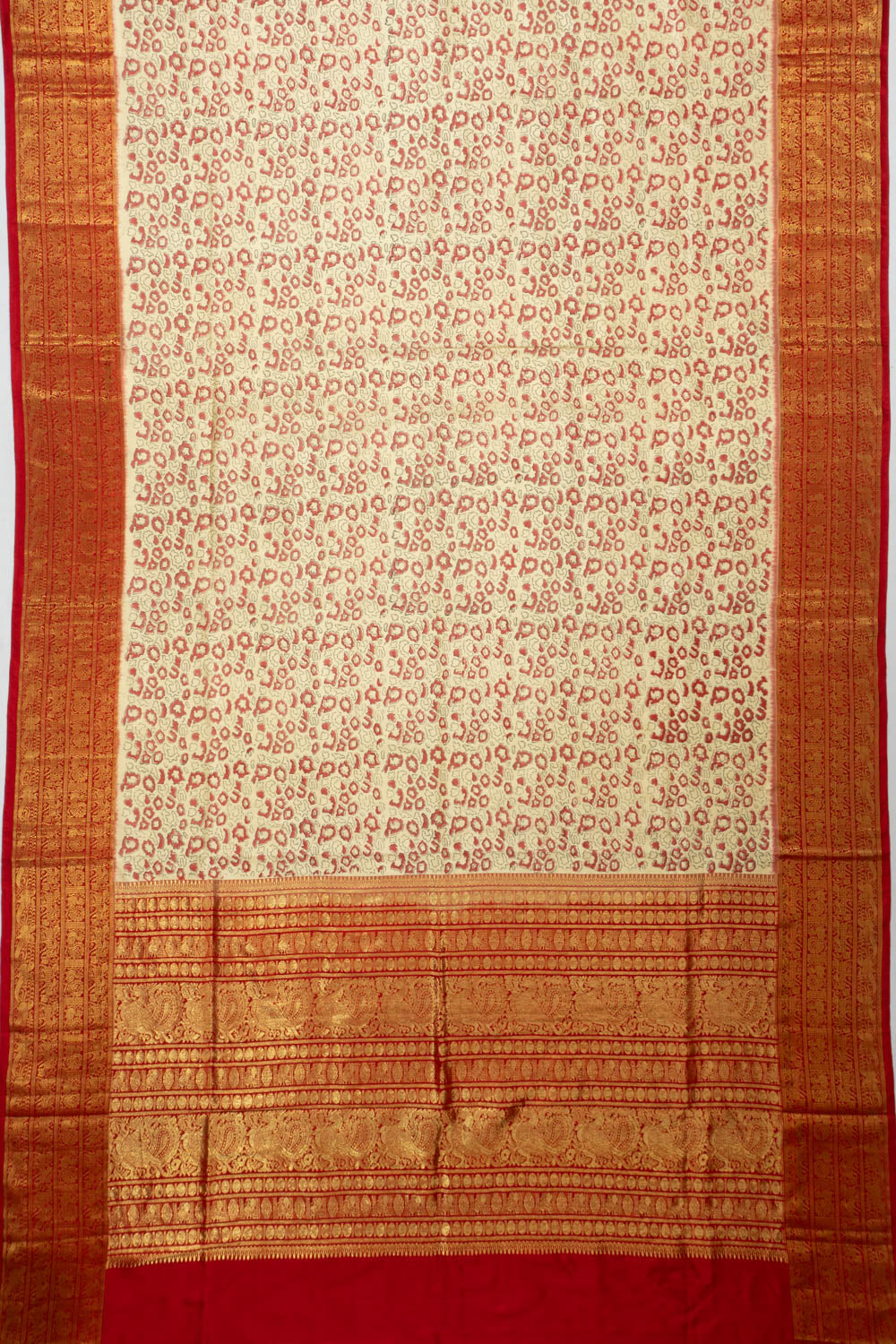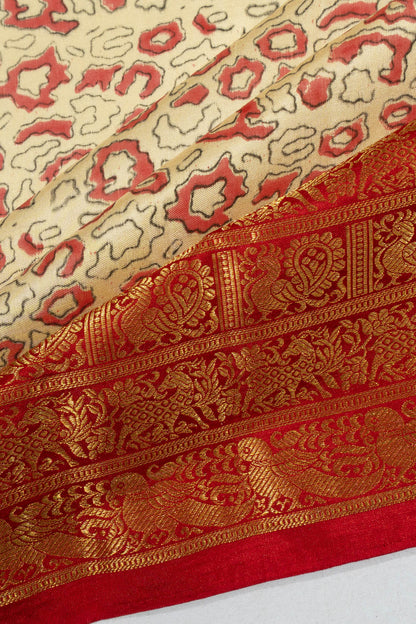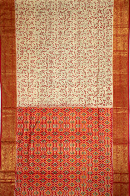 Pochampally Silk Ikat And Printed Cream Saree, Body.