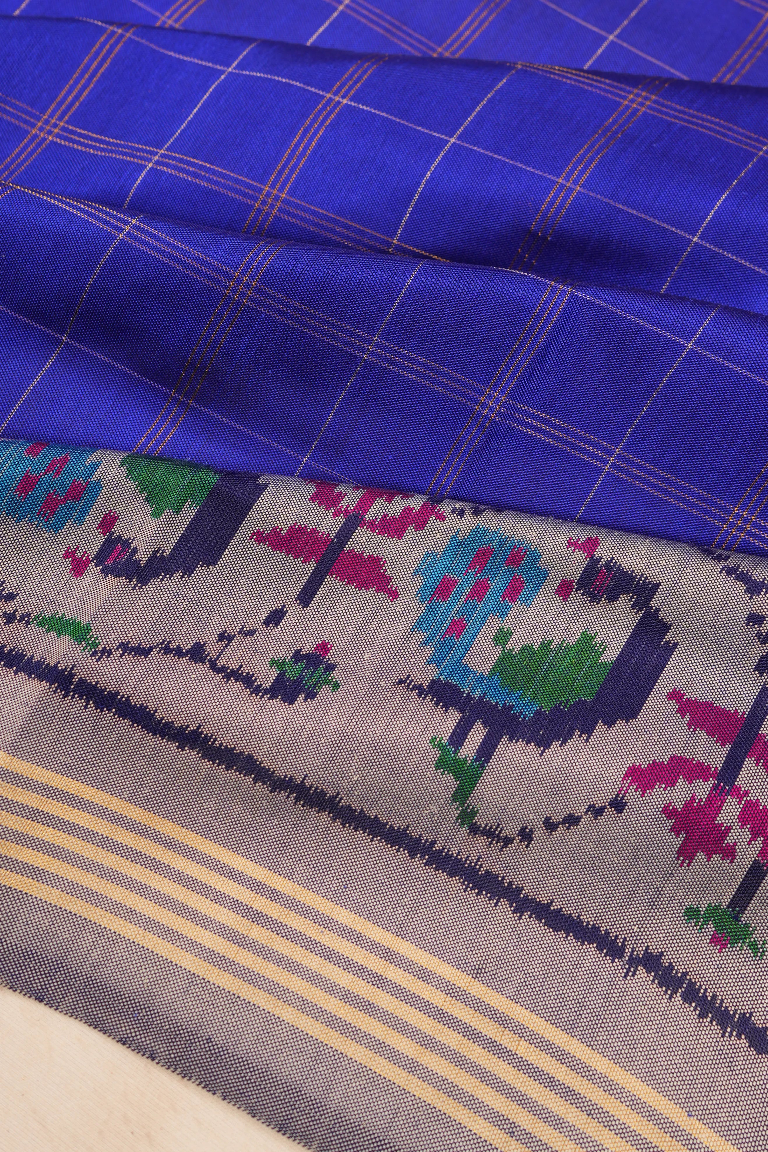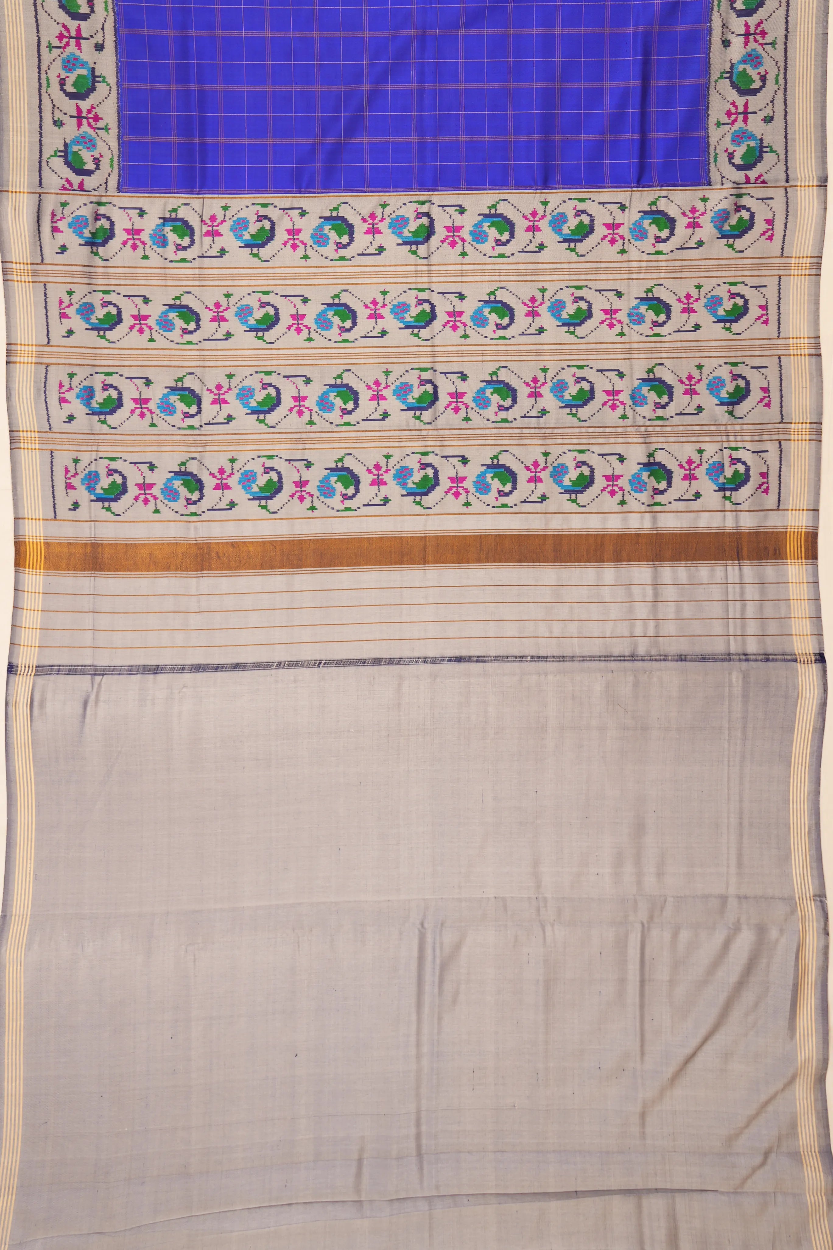 Pochampally Silk Ikat Checks Royal Blue Saree