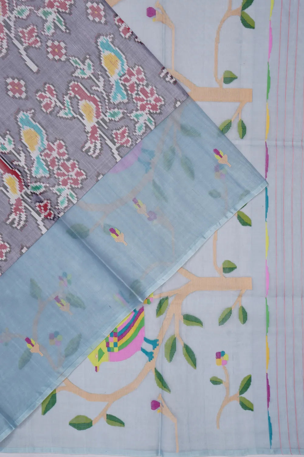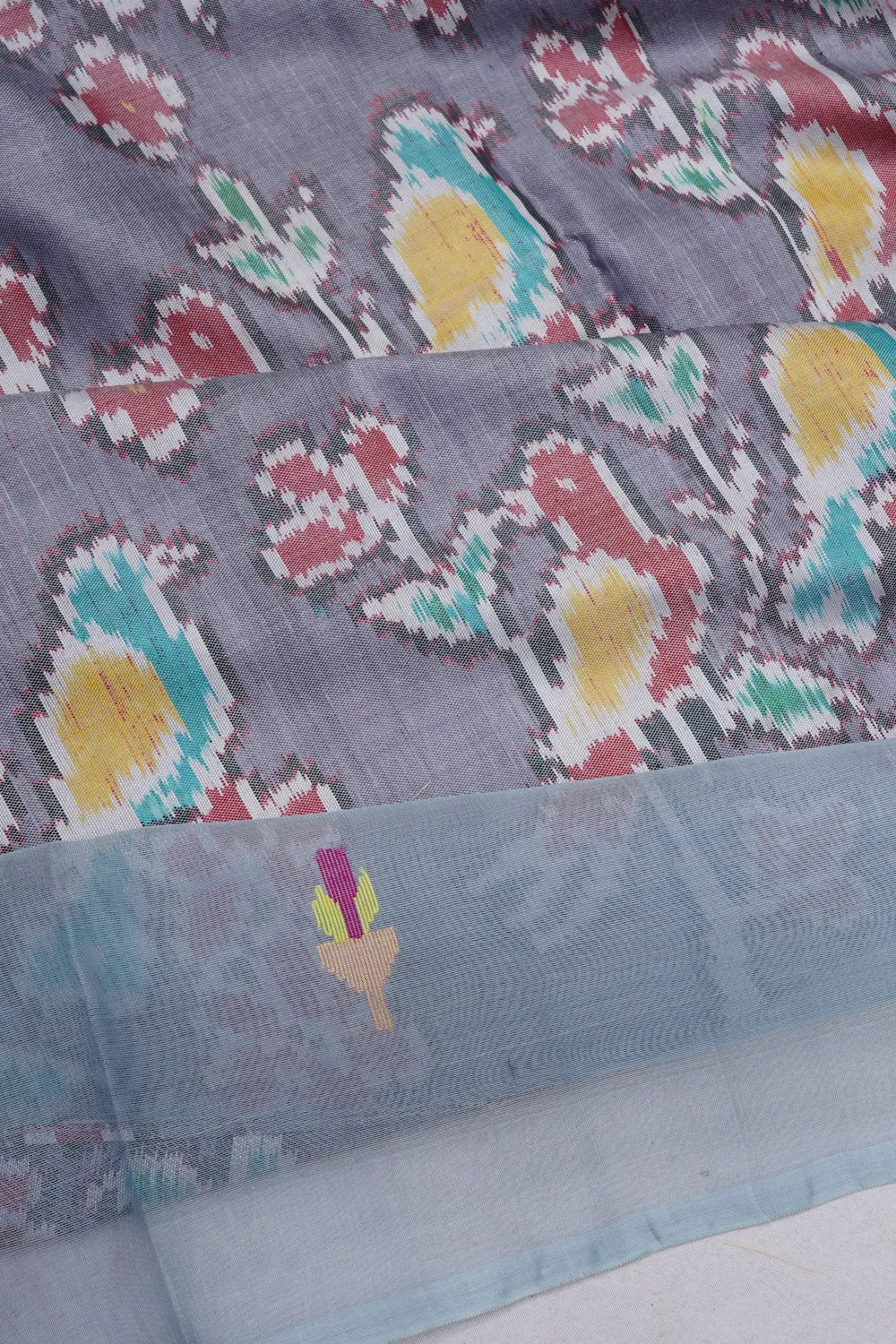 Pochampally Silk Ikat Grey Saree With Organza Border