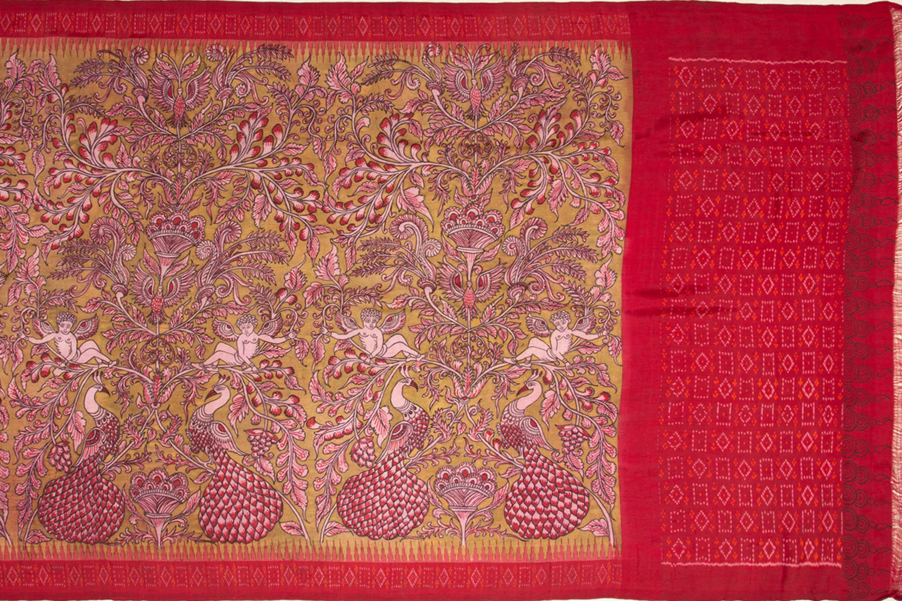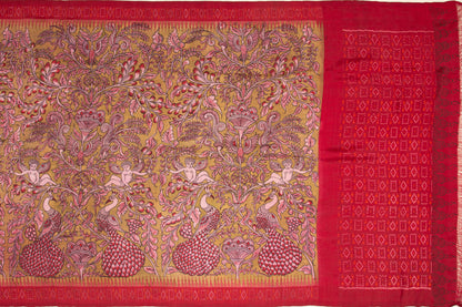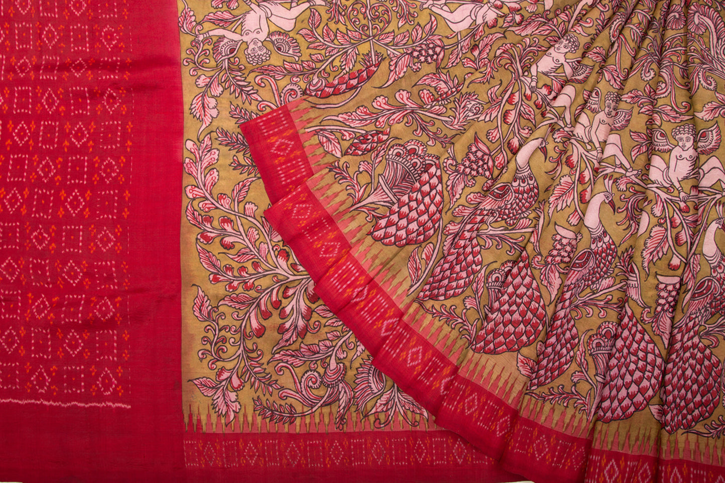 Pochampally Silk Ikat Kalamkari Mustard Yellow Saree