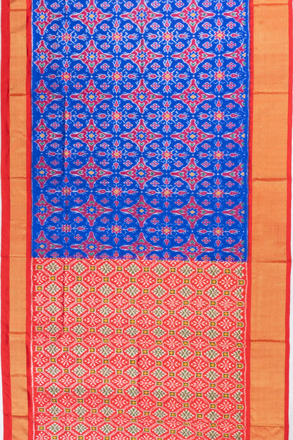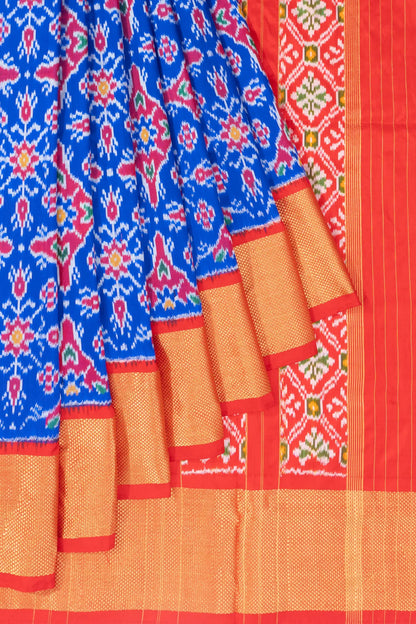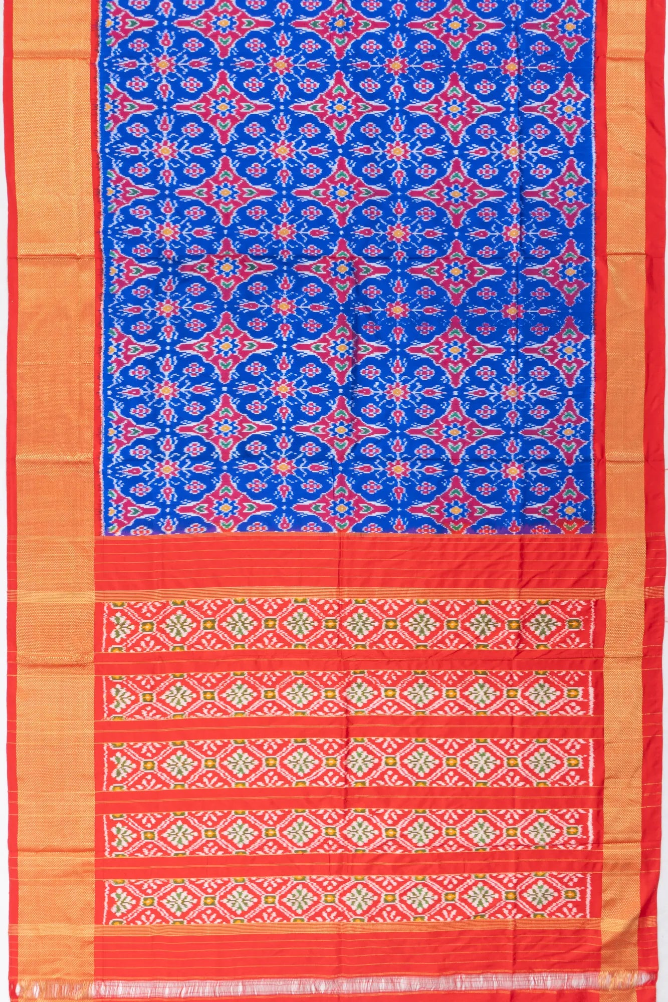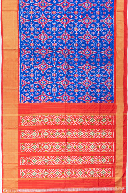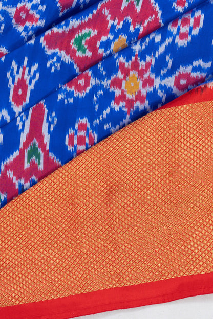 Rich royal blue base highlighted with bold floral Ikat motifs, blending vibrancy with heritage design.