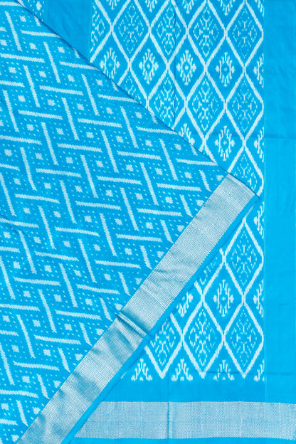 Self Ikat brocade blouse with borders, tying the entire ensemble together with elegance.