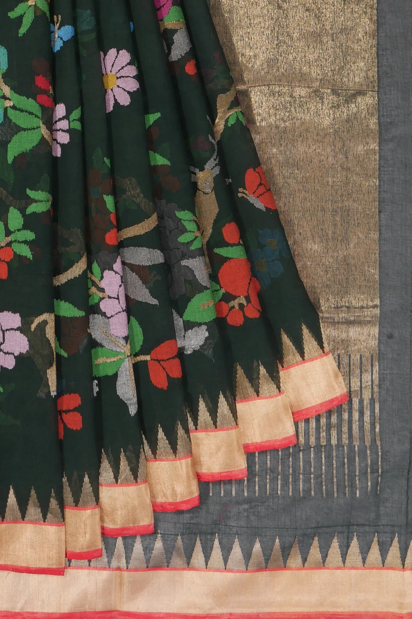 Ponduru Handspun Cotton All Over Jamdani Bottle Green Saree