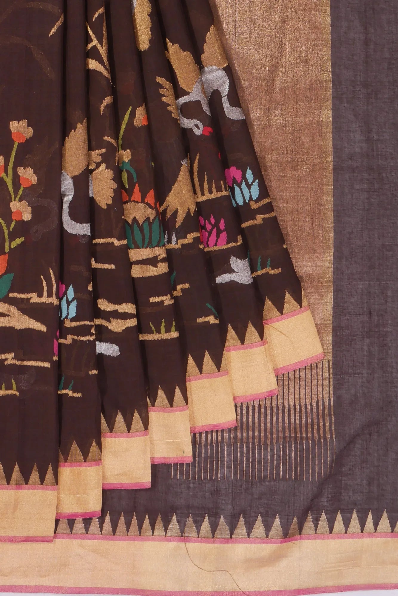Ponduru Handspun Cotton All Over Jamdani Brown Saree