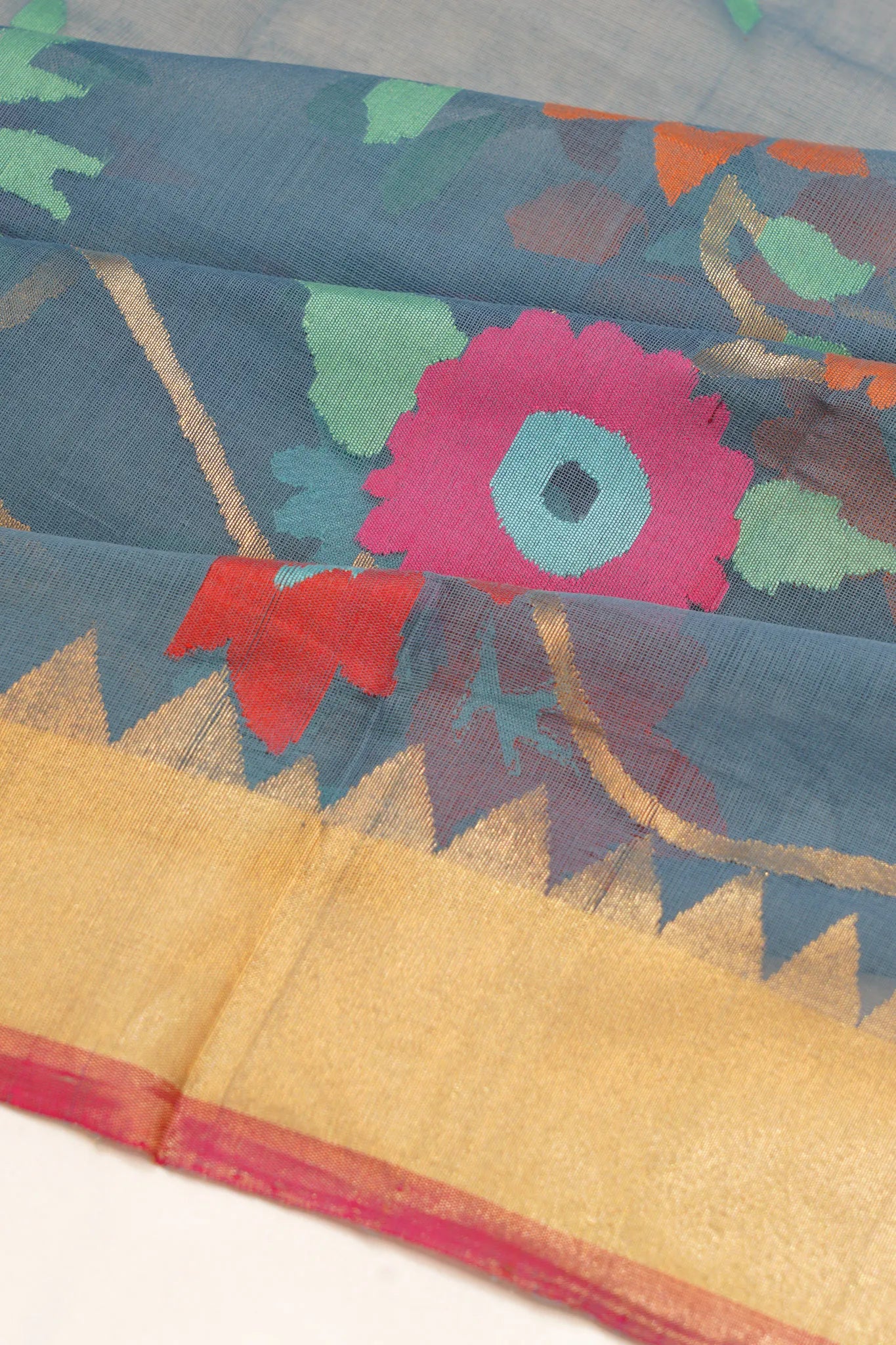 This heritage-rich piece showcases the delicate artistry of Jamdani weaving, bringing floral motifs to life with grace and elegance