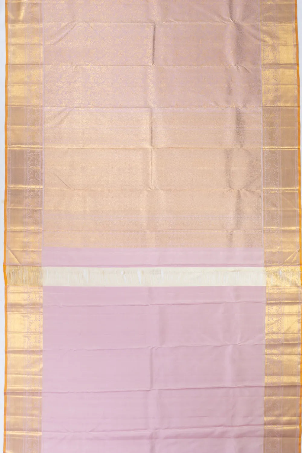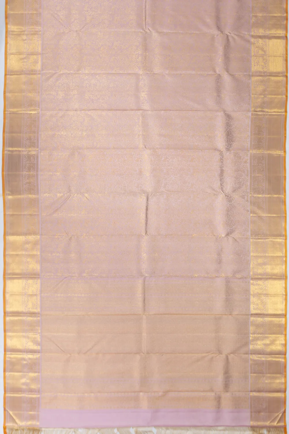 Gold zari vanasingaram motifs beautifully interwoven into floral vines, offering a soft yet intricate pattern.