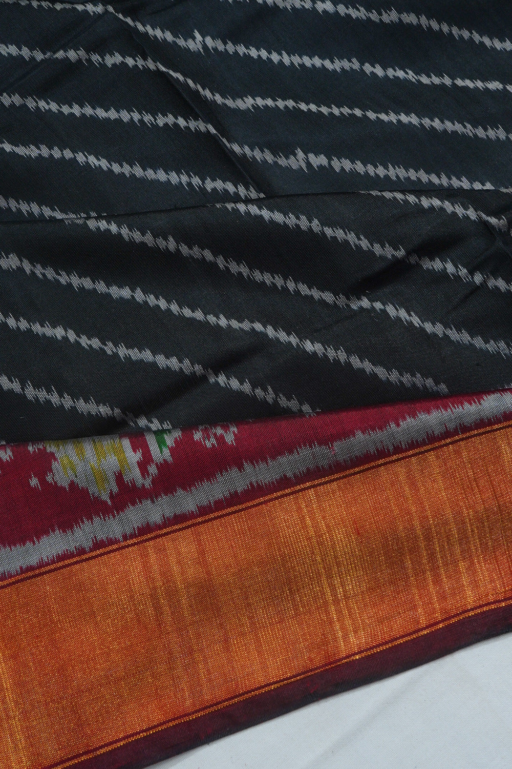 Rajkot Patola Silk Ikat Diagonal Lines Black Saree