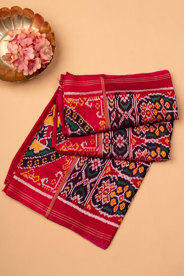 The self horizontal lines small border adds a whimsical touch The pallu showcases self floral Ikat pallu The self plain blouse completes the ensemble with finesse