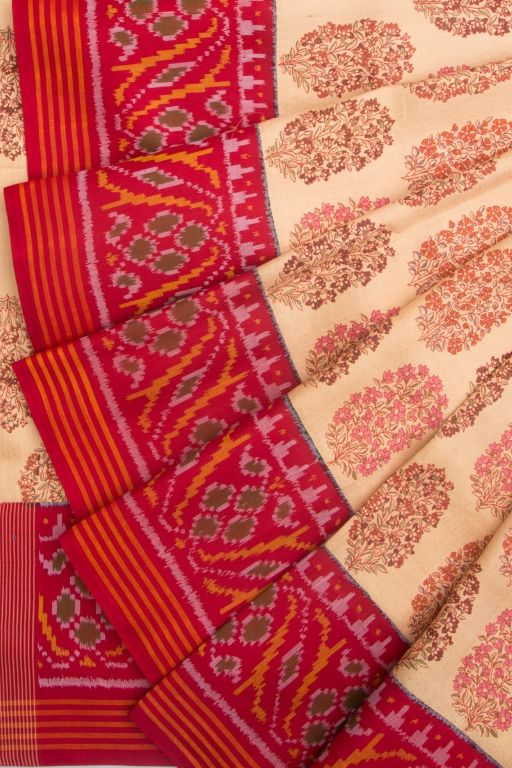 Semi Patan Patola Silk Printed Cream Saree