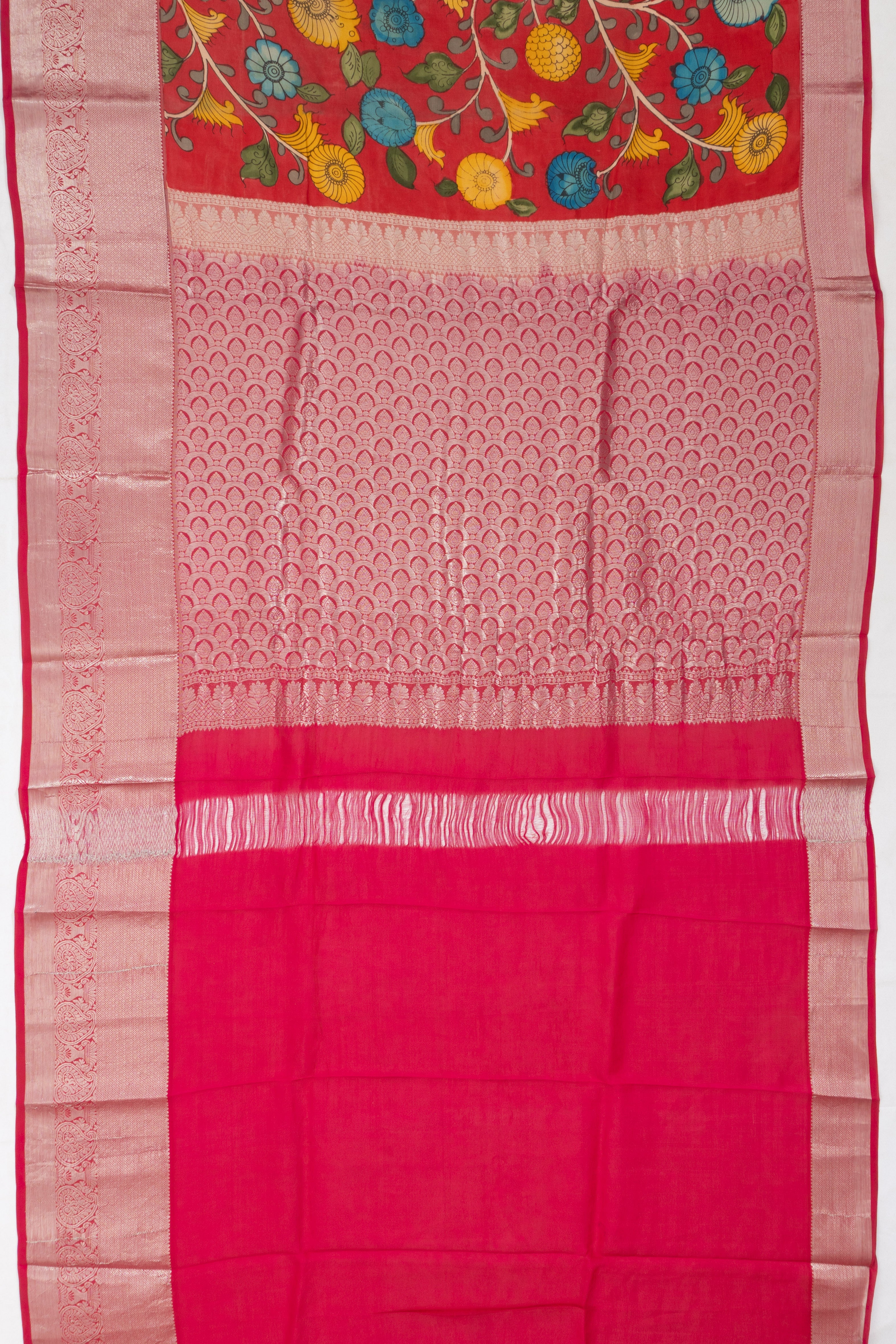 Product Name: Soft Silk Kalamkari Handpainted Red Saree