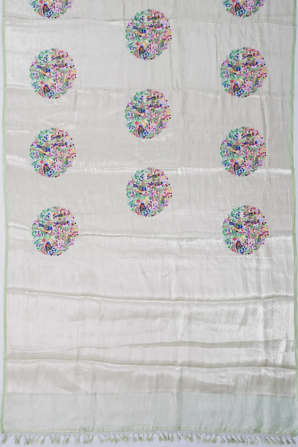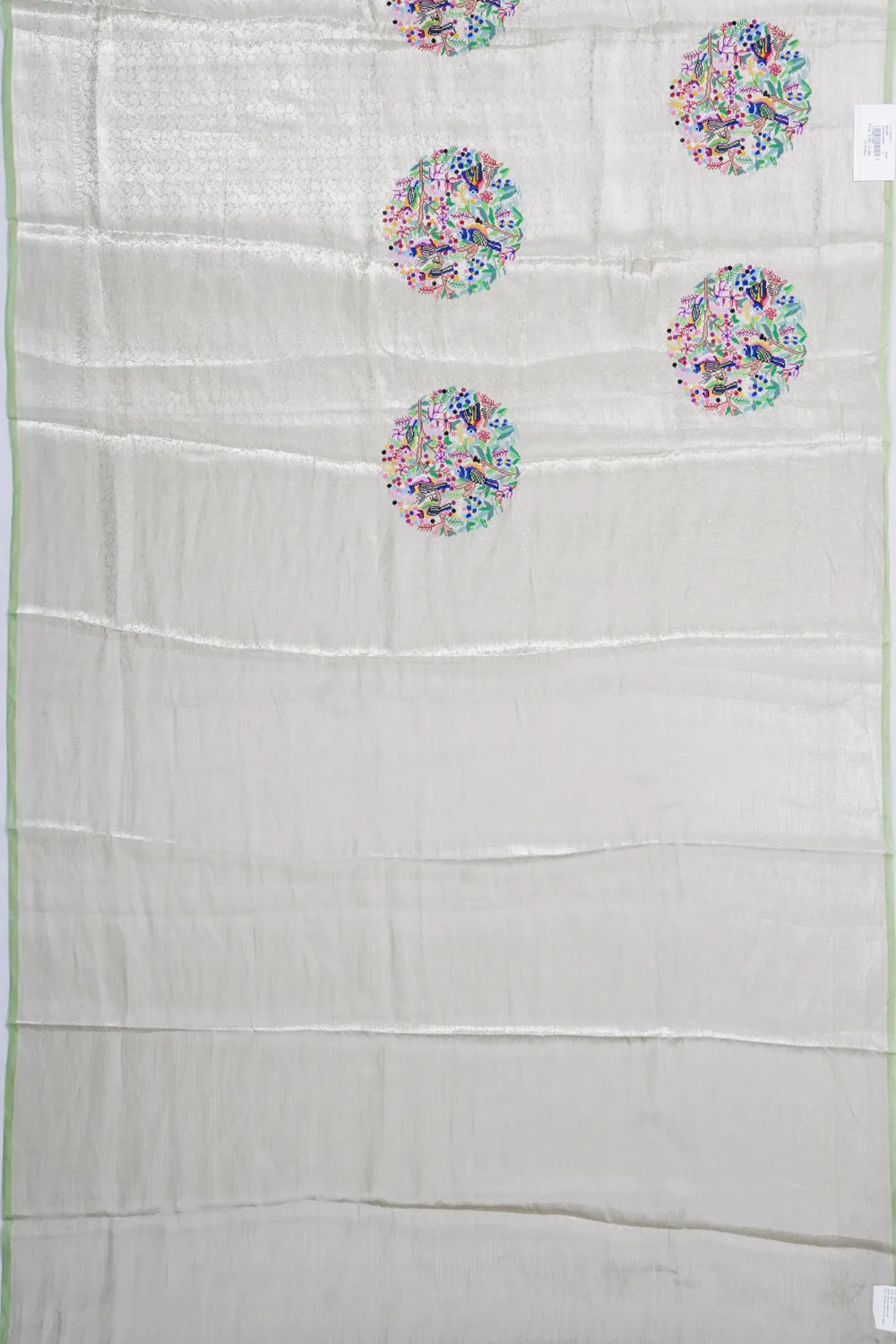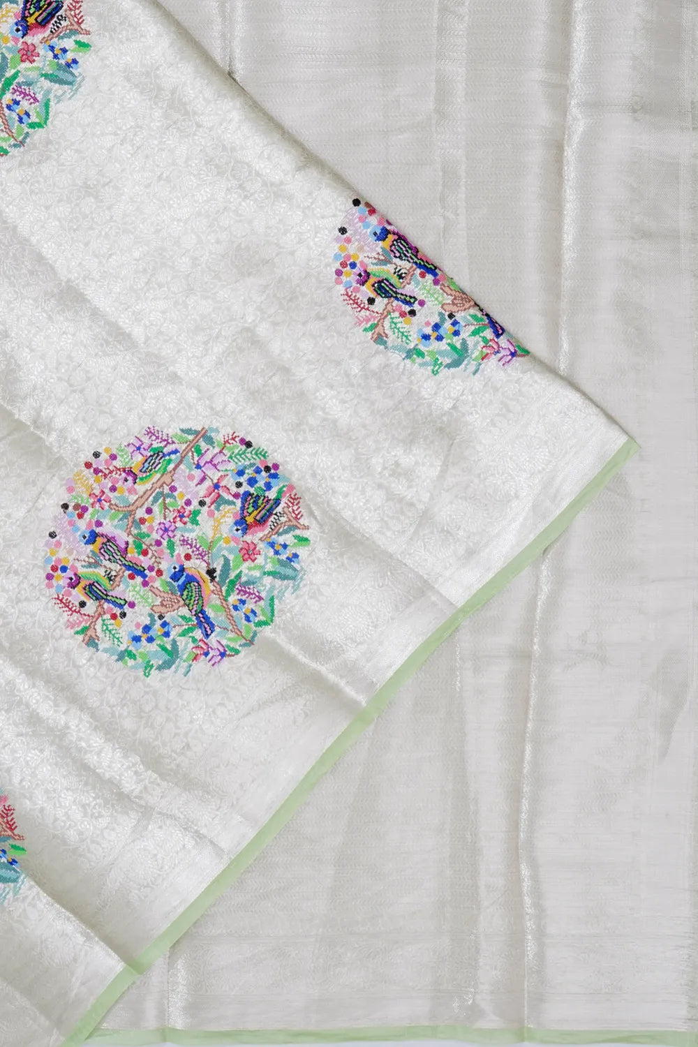 Soft Silk Tissue Brocade And Embroidery Butta Silver Saree