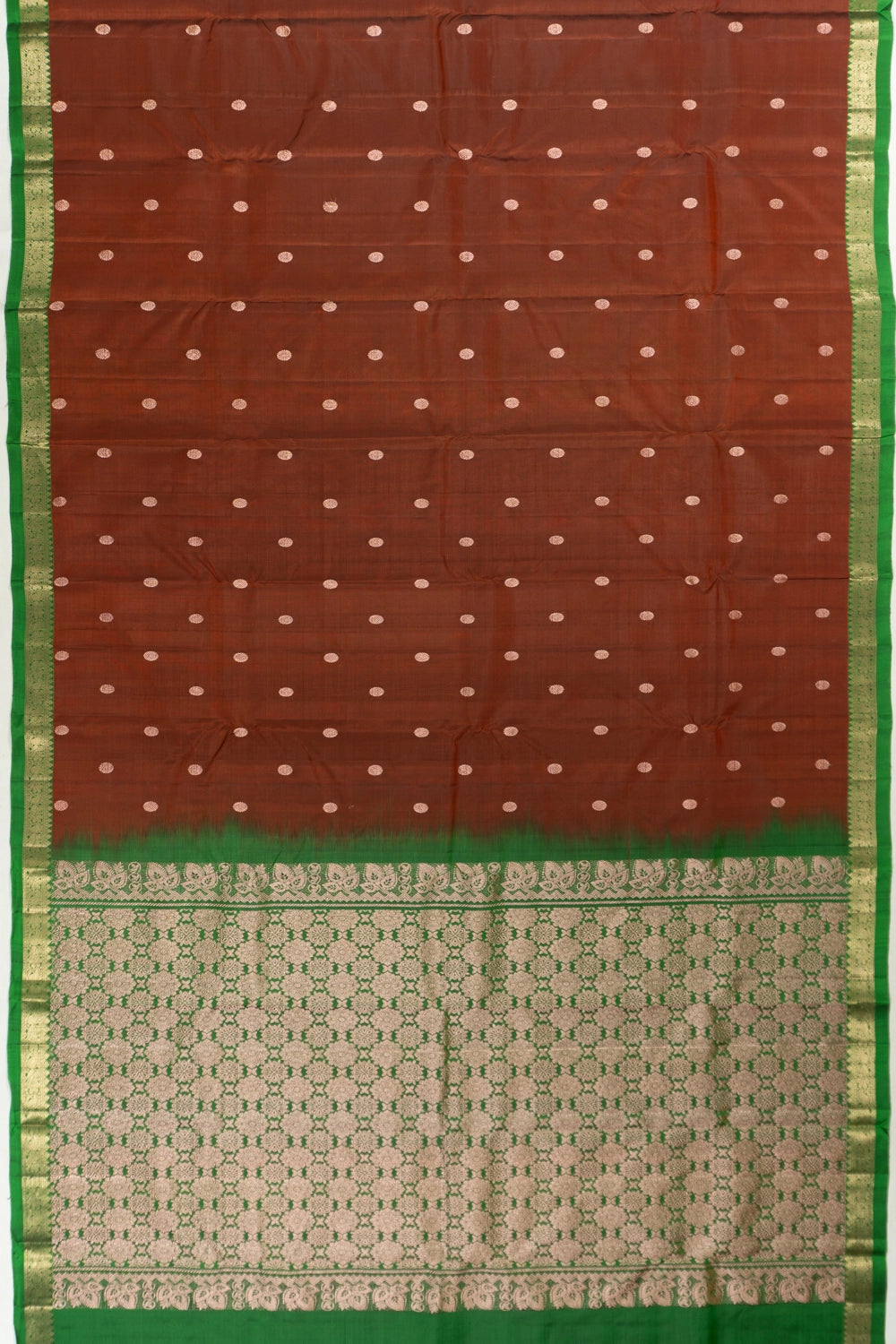 The body of the saree is adorned with elegant buttas, exuding a classic charm that captures the essence of traditional artistry