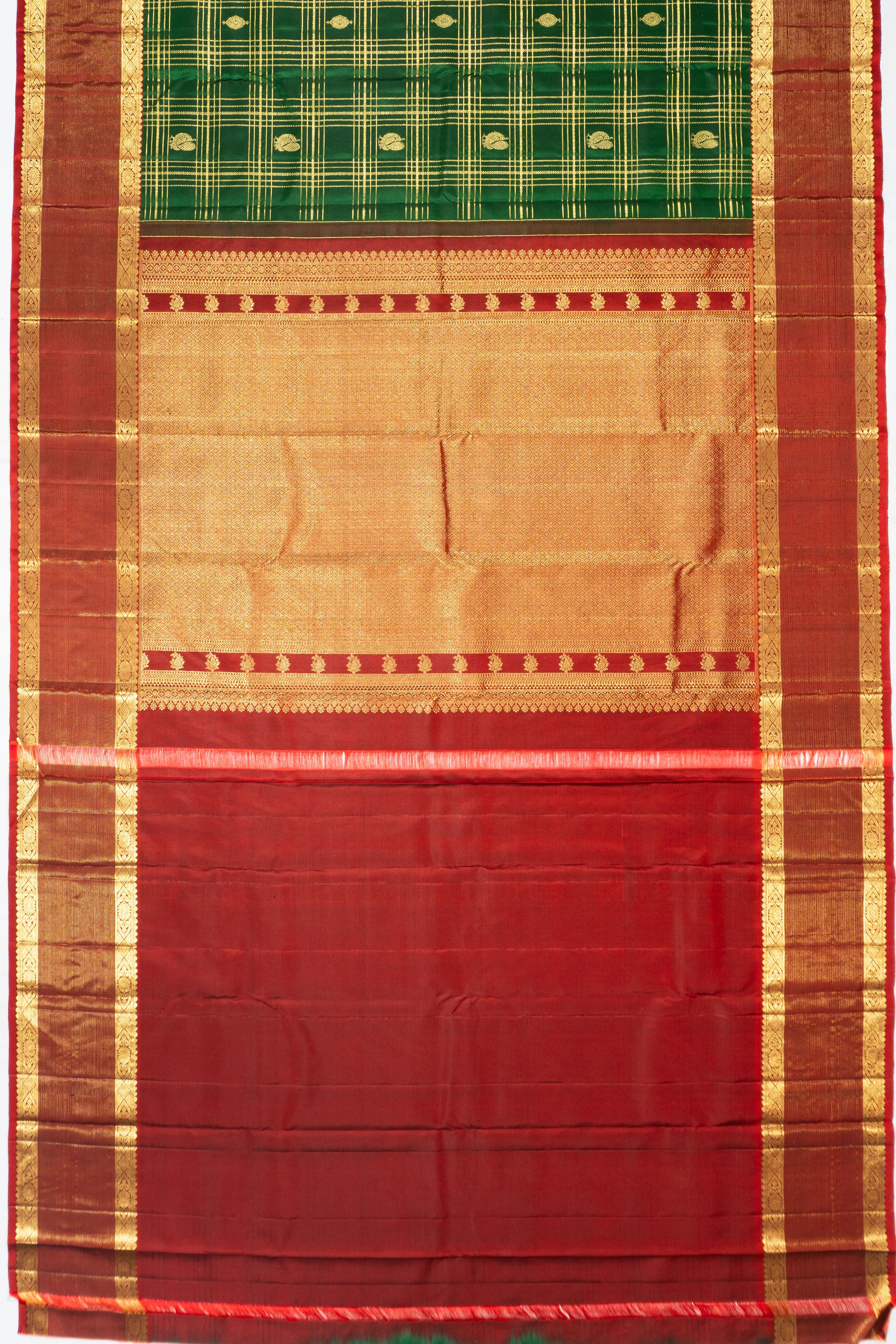 Taranga Kanchi Silk Checks And Butta Green Saree With Rettai Pettu Border