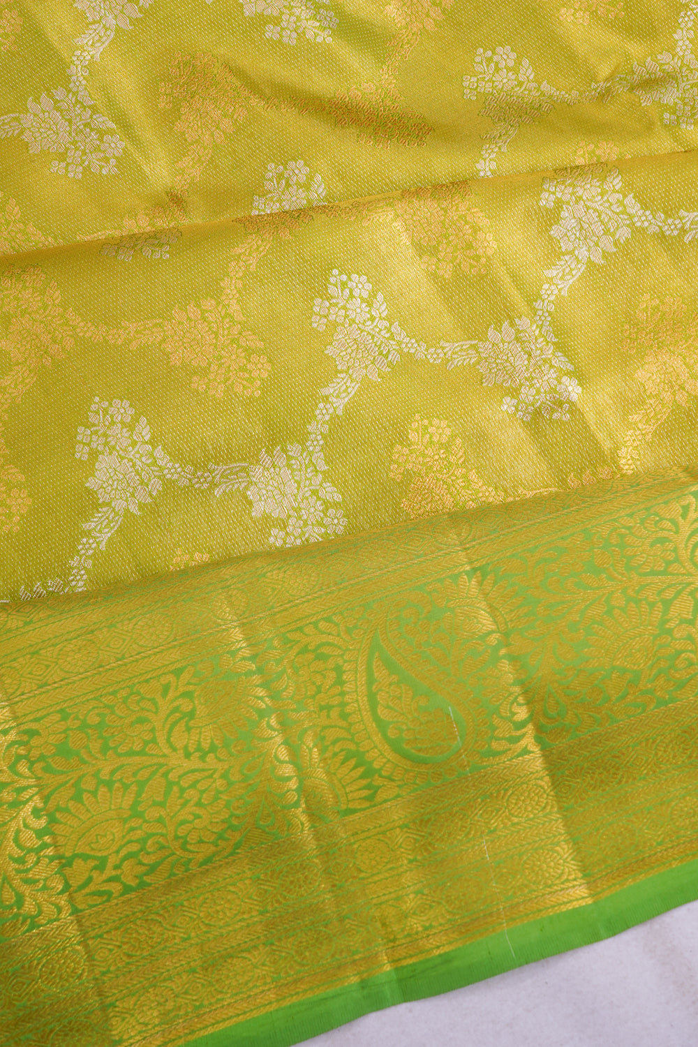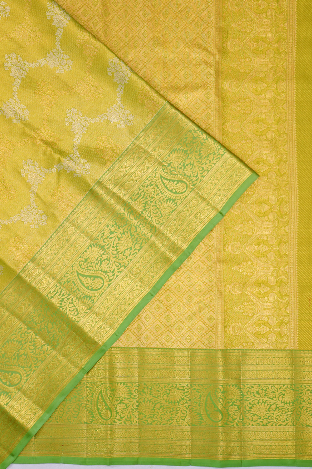 Taranga Kanchi Silk Tissue Brocade Green Saree