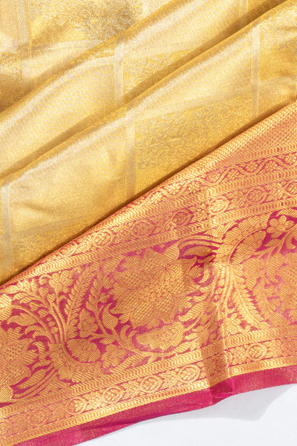 Taranga Kanchi Silk Tissue Checks Gold Saree