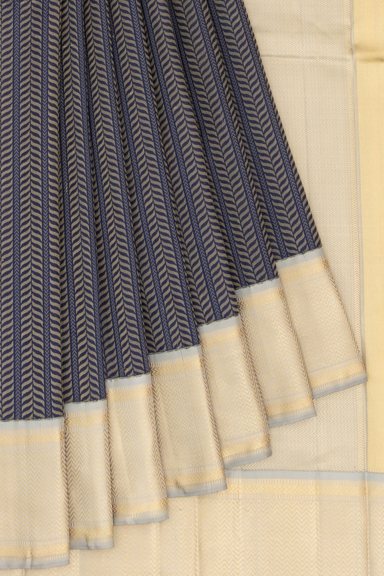 Thread Kanchipuram Silk Geometrical Brocade Dark Blue Saree