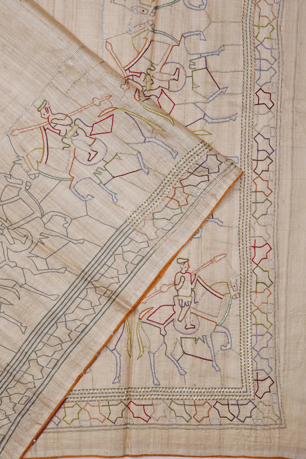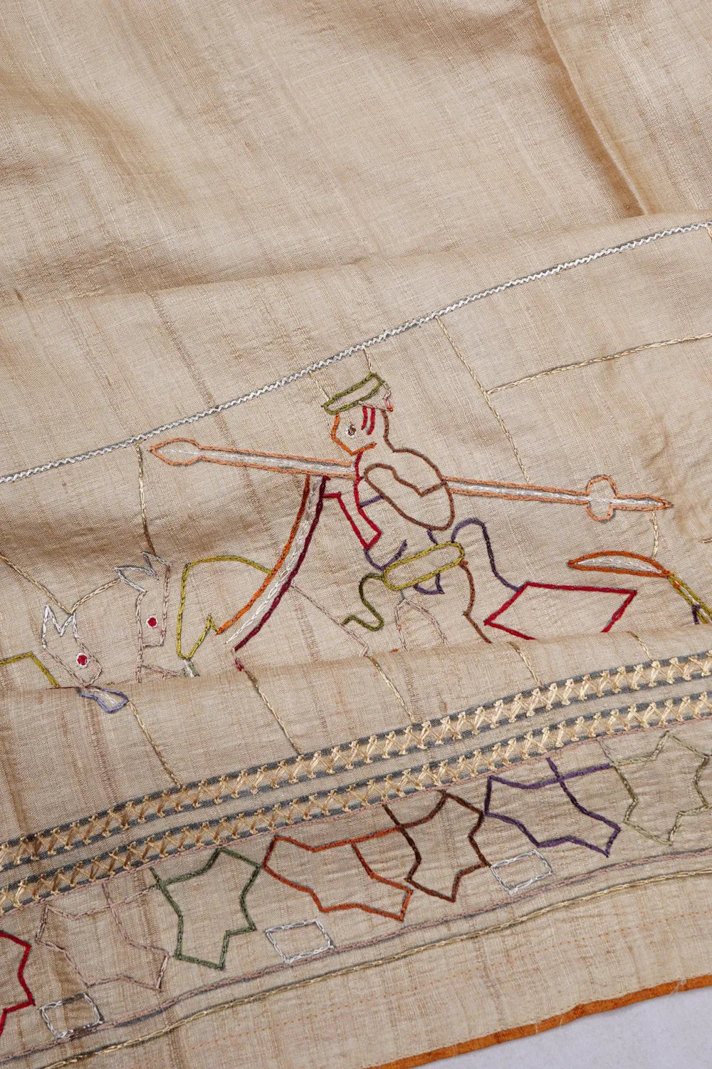 Tussar Batik Printed Beige Saree With Embroidery