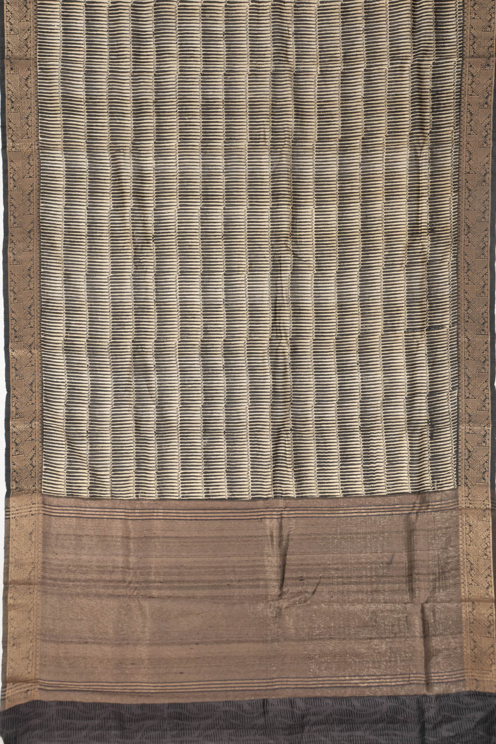 Classic self antique zari vertical lines brocade pallu adding regal charm.