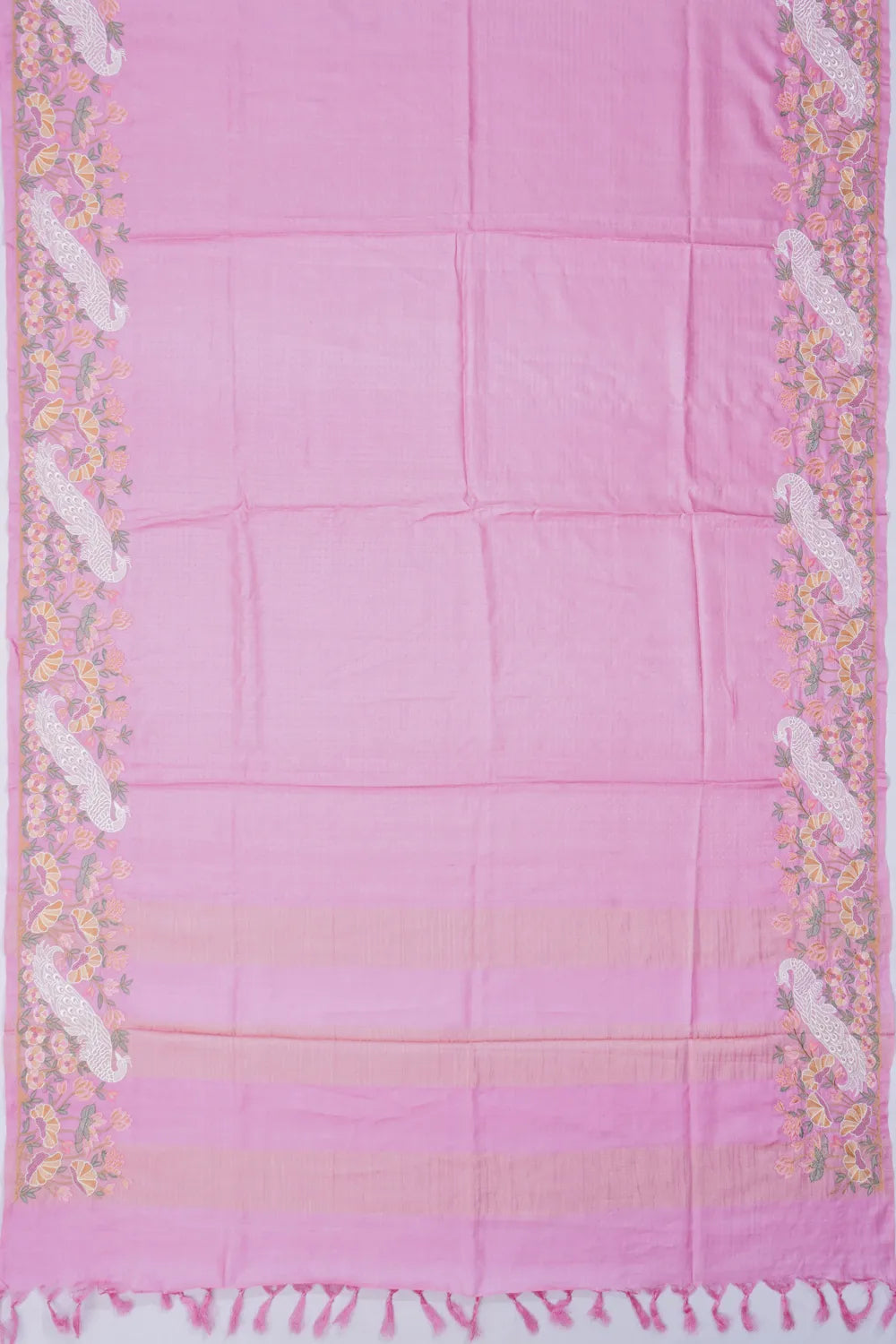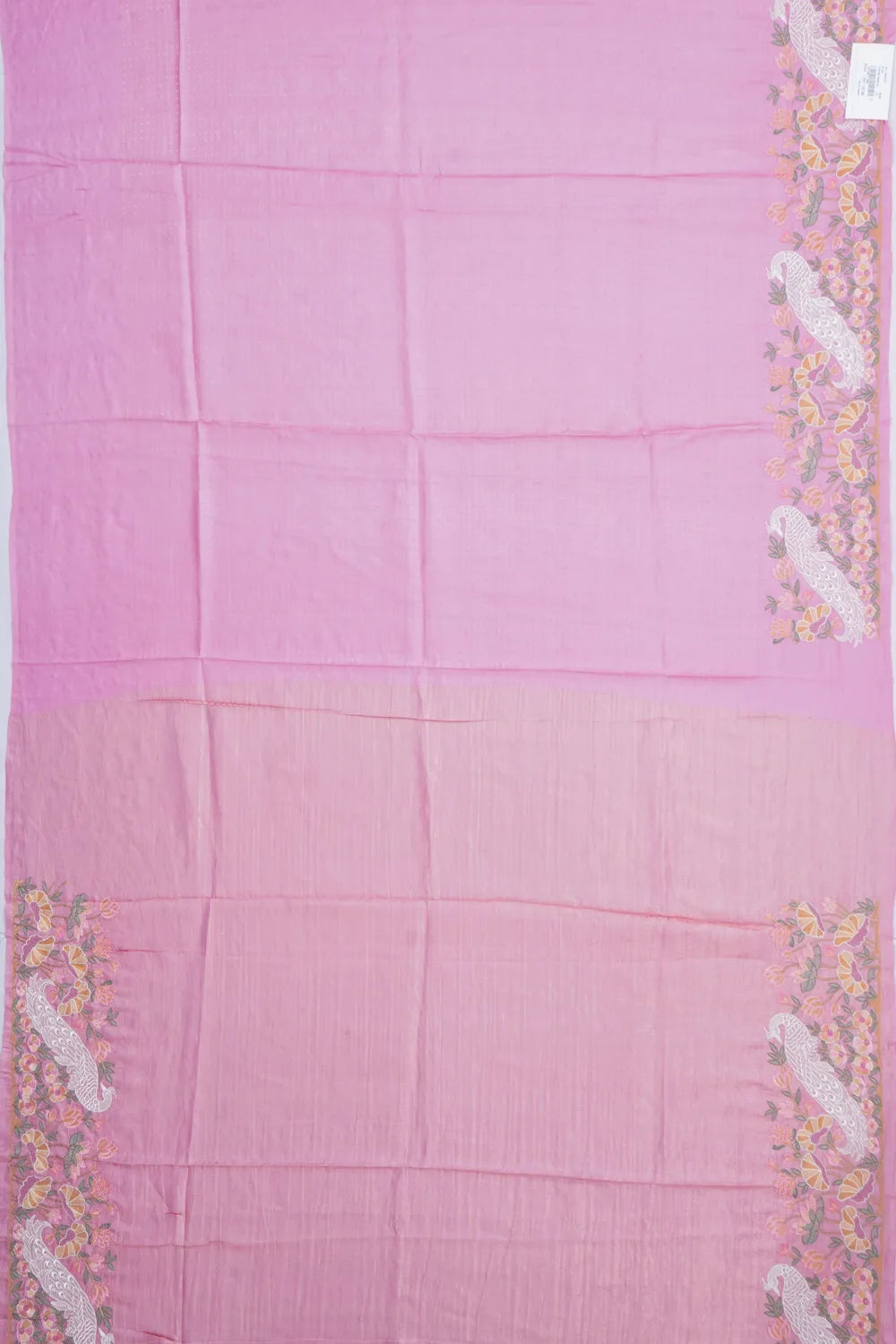Tussar Brocade Baby Pink Saree With Embroidery Border