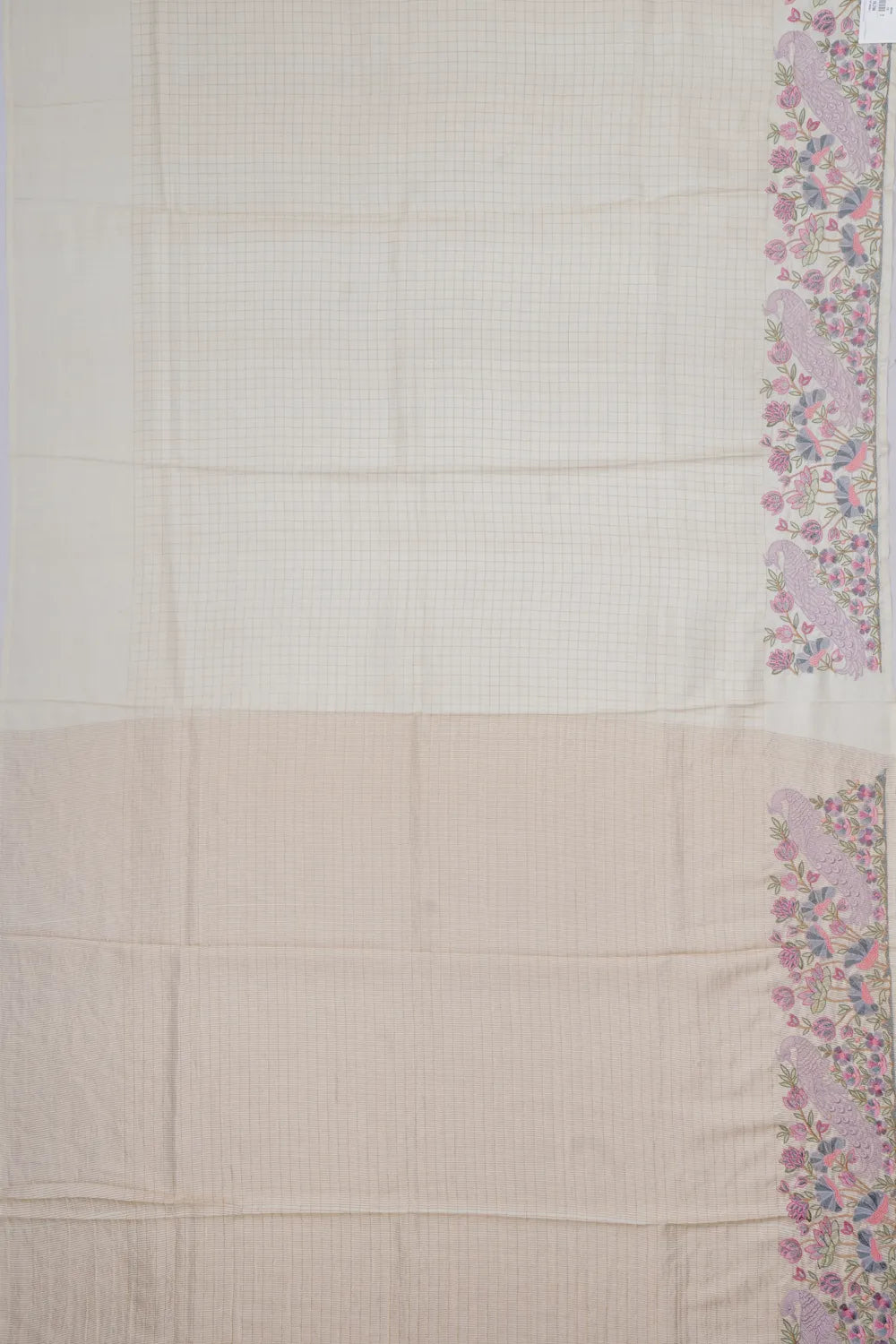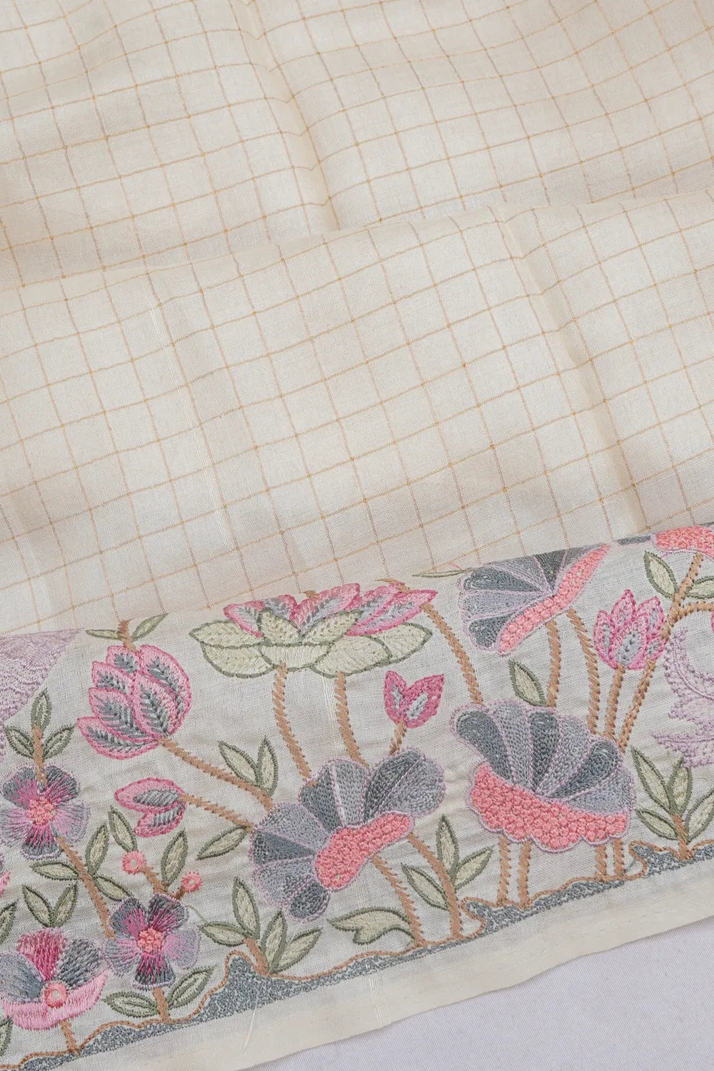 The body is adorned With self gold zari checks, offering a subtle shimmer that speaks of sophistication and timeless charm