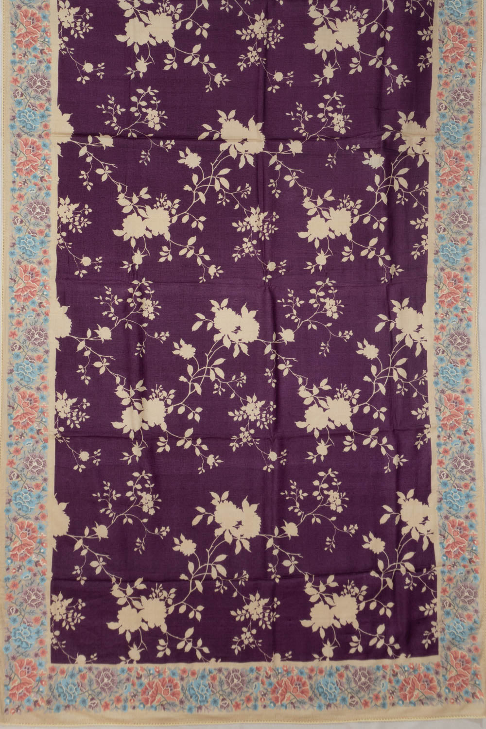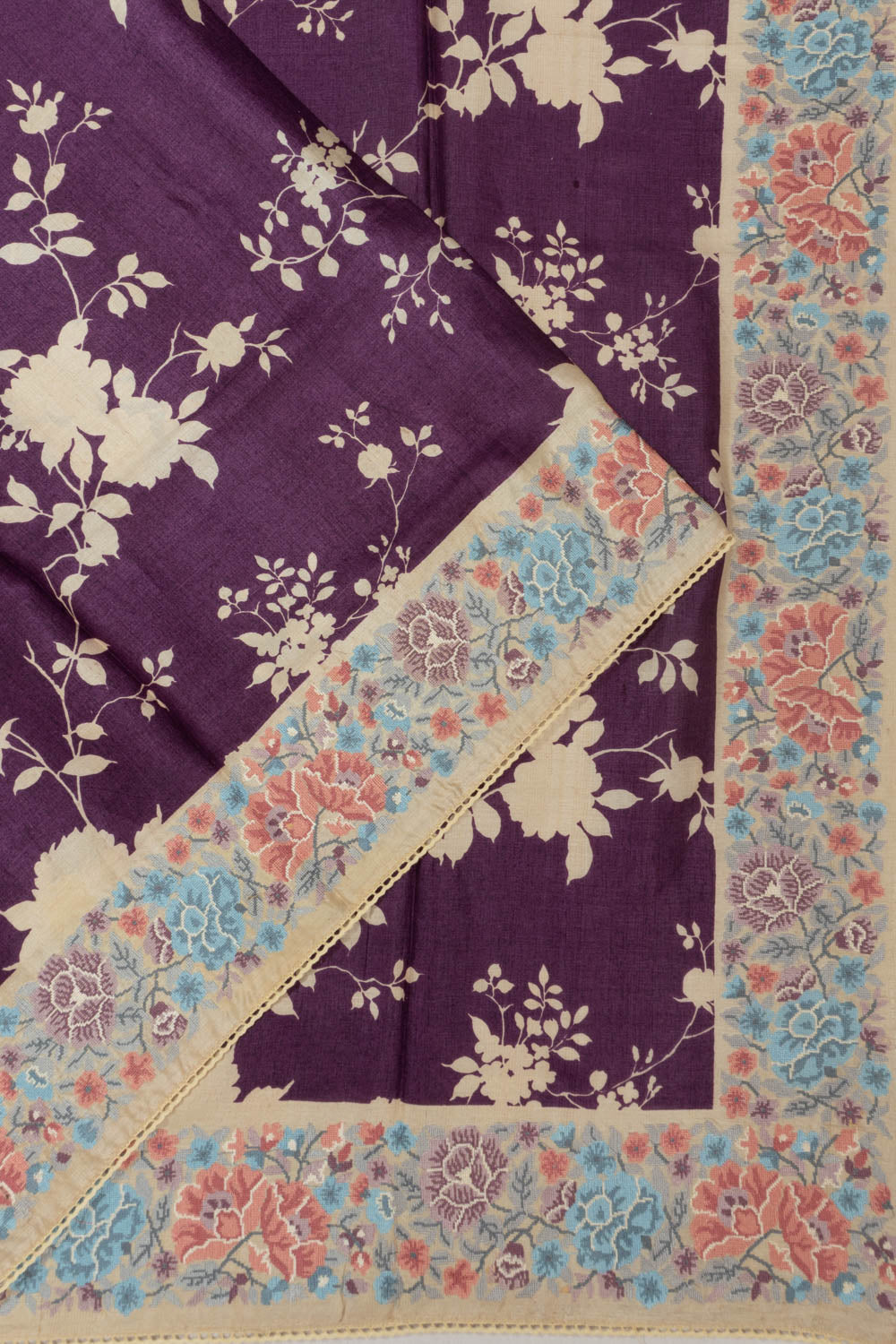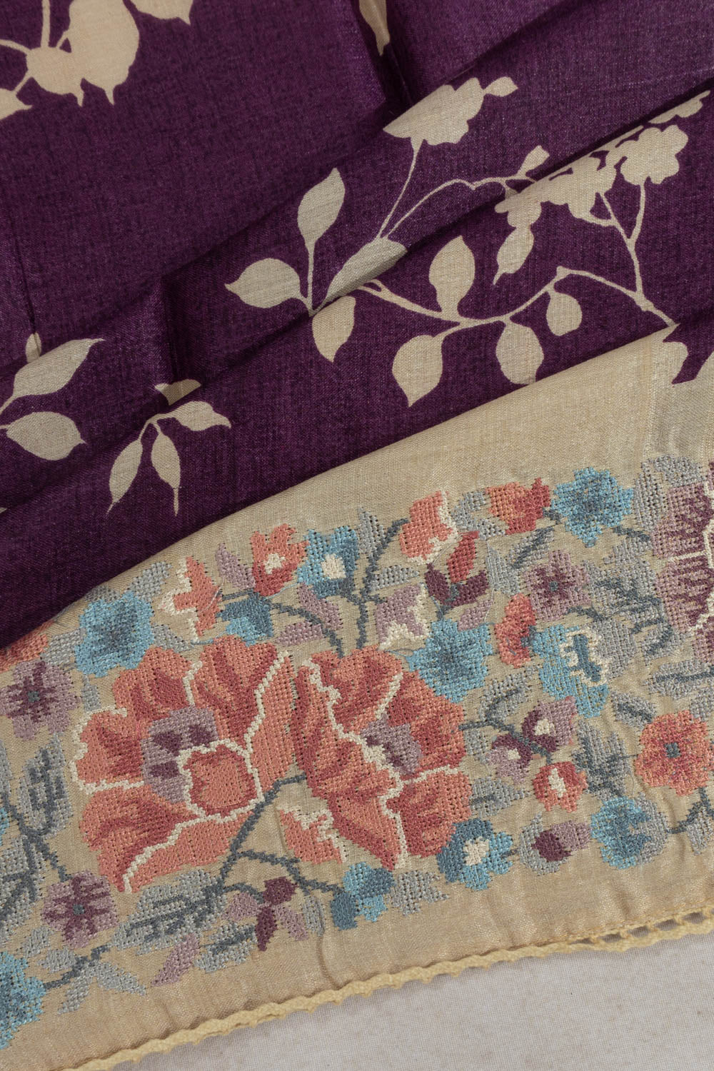 Contrast cream floral embroidery border that enhances the dark purple body with soft, delicate detailing for an elegant touch.