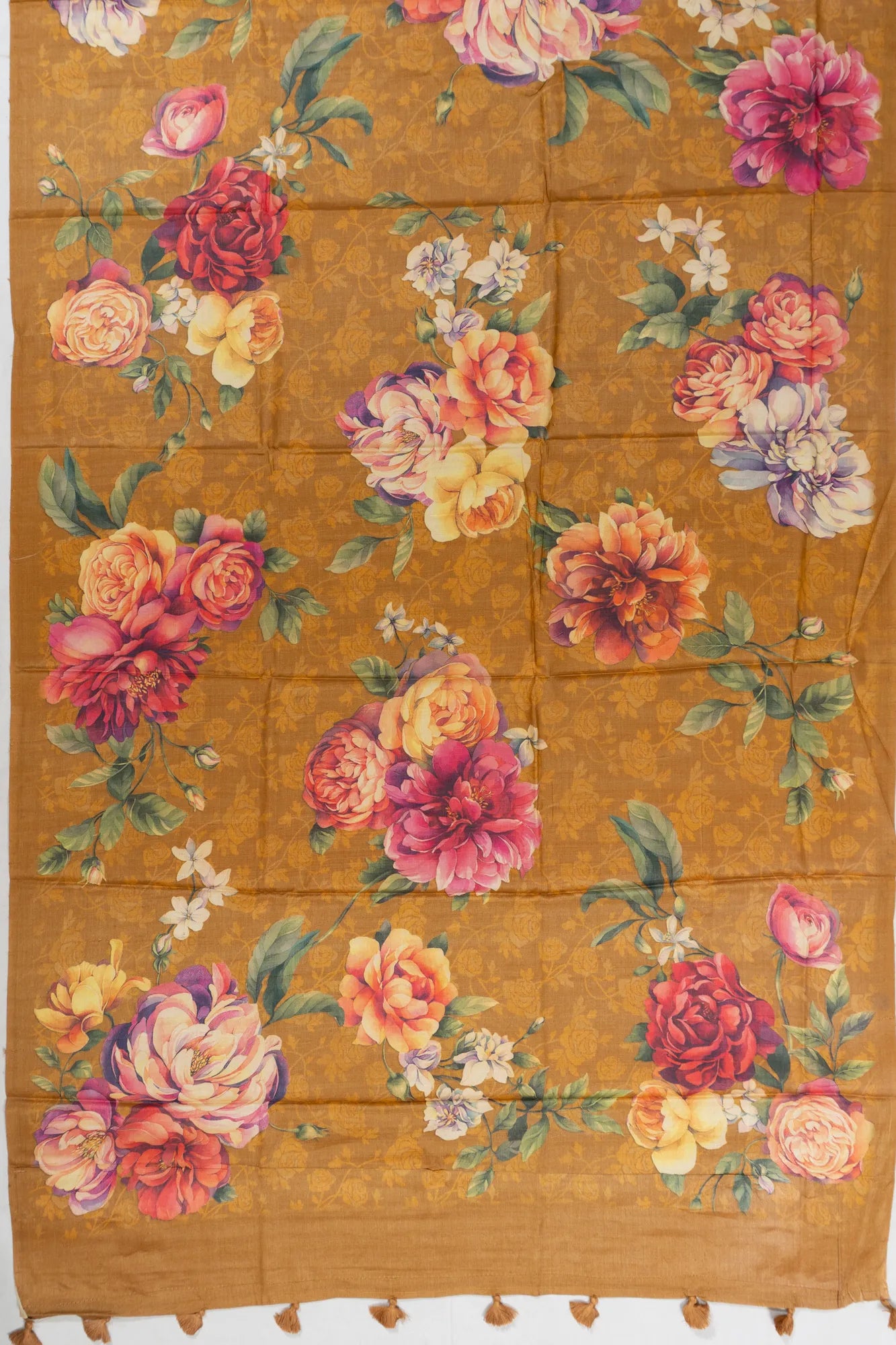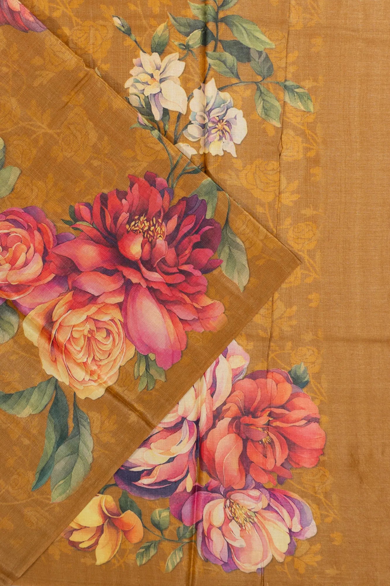 Tussar Floral Printed Yellow Saree
