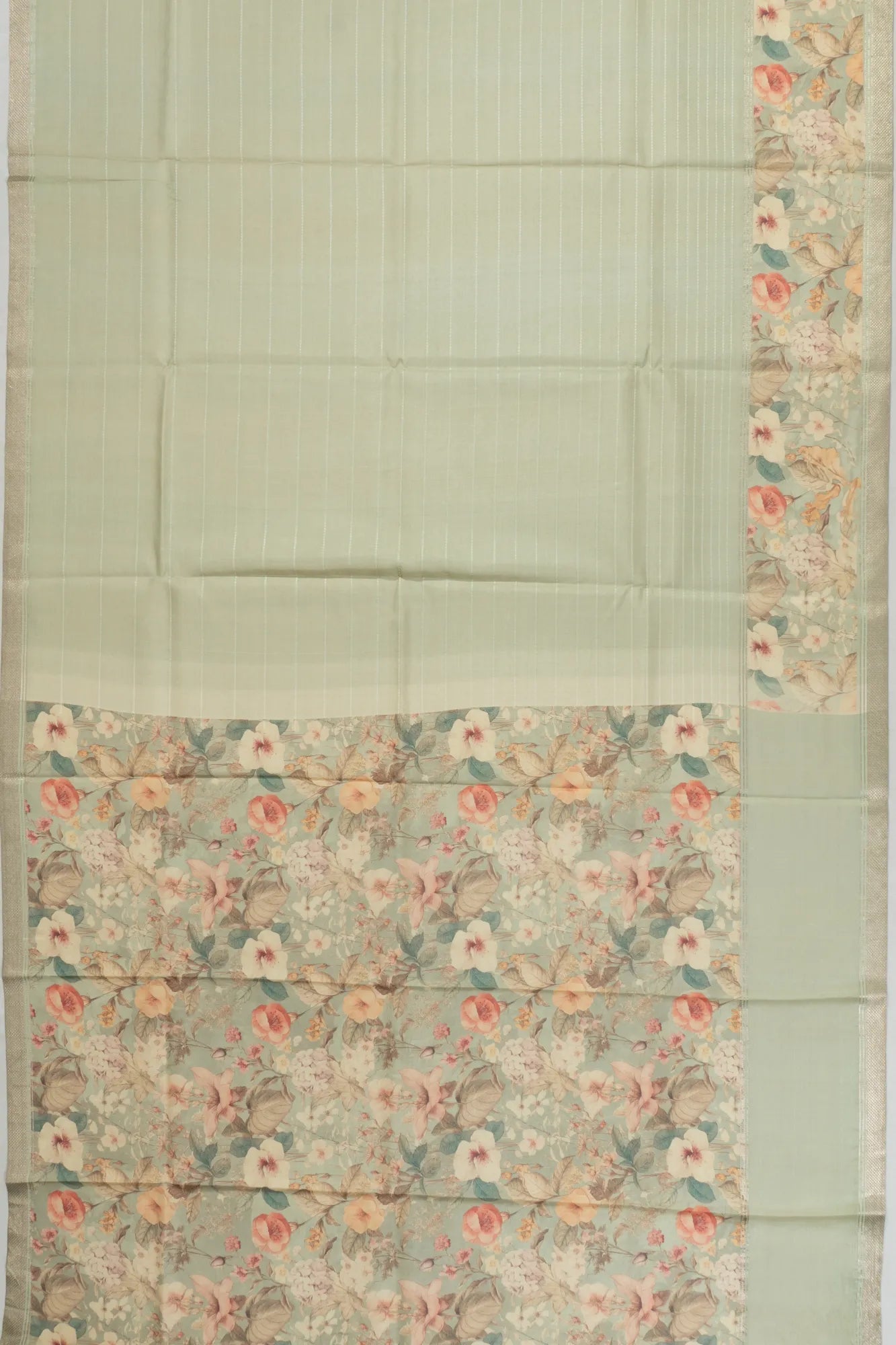 Tussar Horizontal Lines Pastel Green Saree With Prints