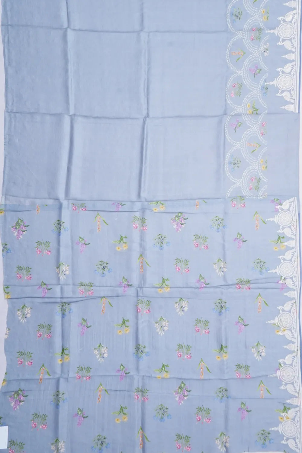 Tussar Plain Baby Pastel Blue Saree With Embroidery