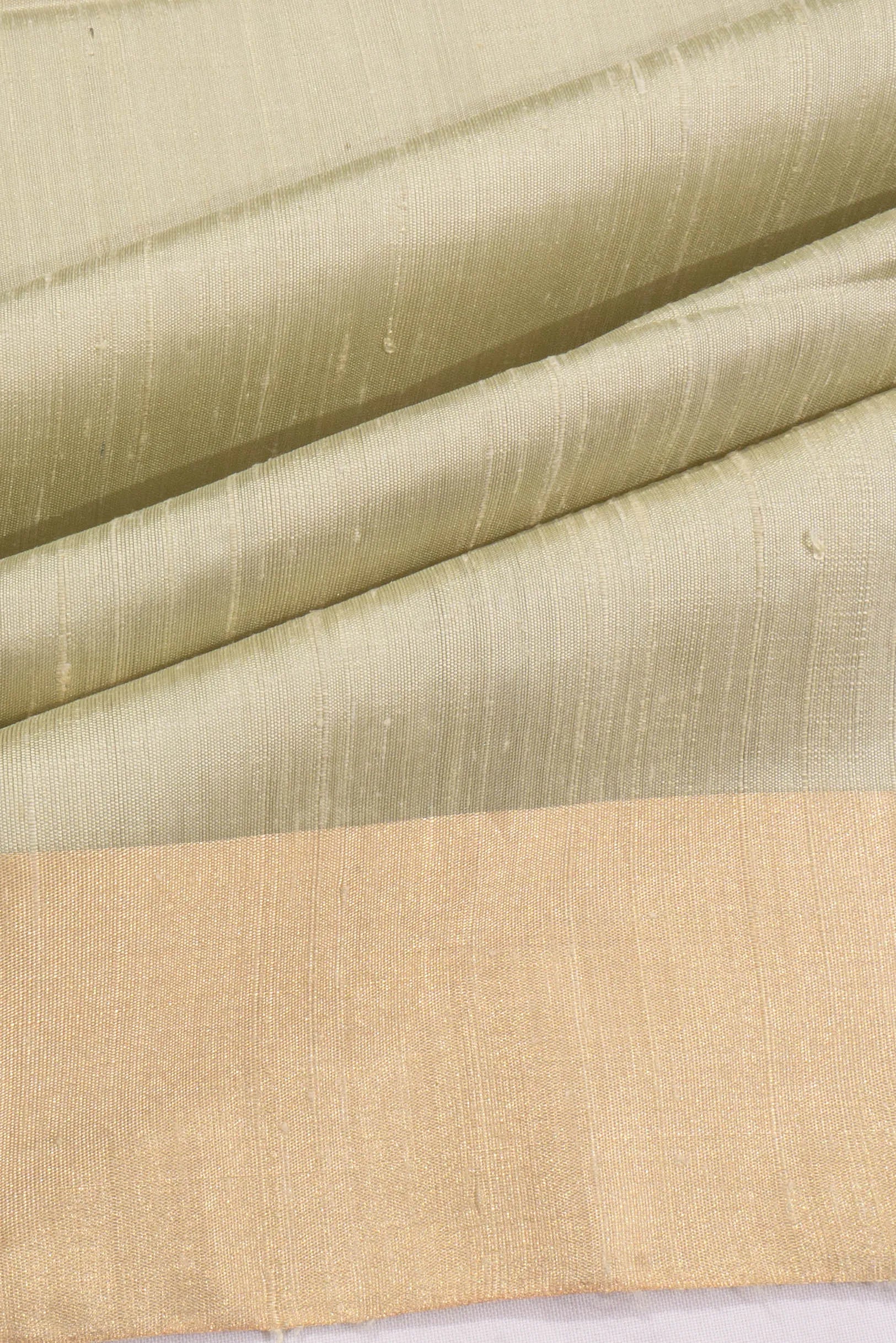 Discover the allure of tradition with this Tussar Plain Mint Green Saree, a testament to refined elegance and heritage-rich craftsmanship The saree's plain body exudes subtle sophistication, while the self gold zari kaddi small border adds a touch of opulence, perfect for those who appreciate understated luxury