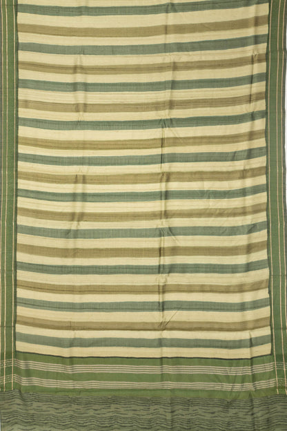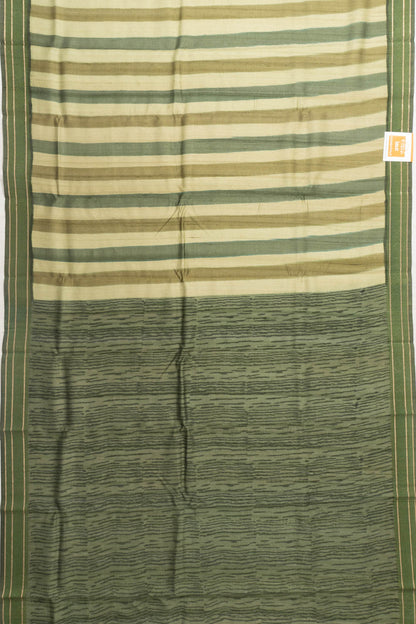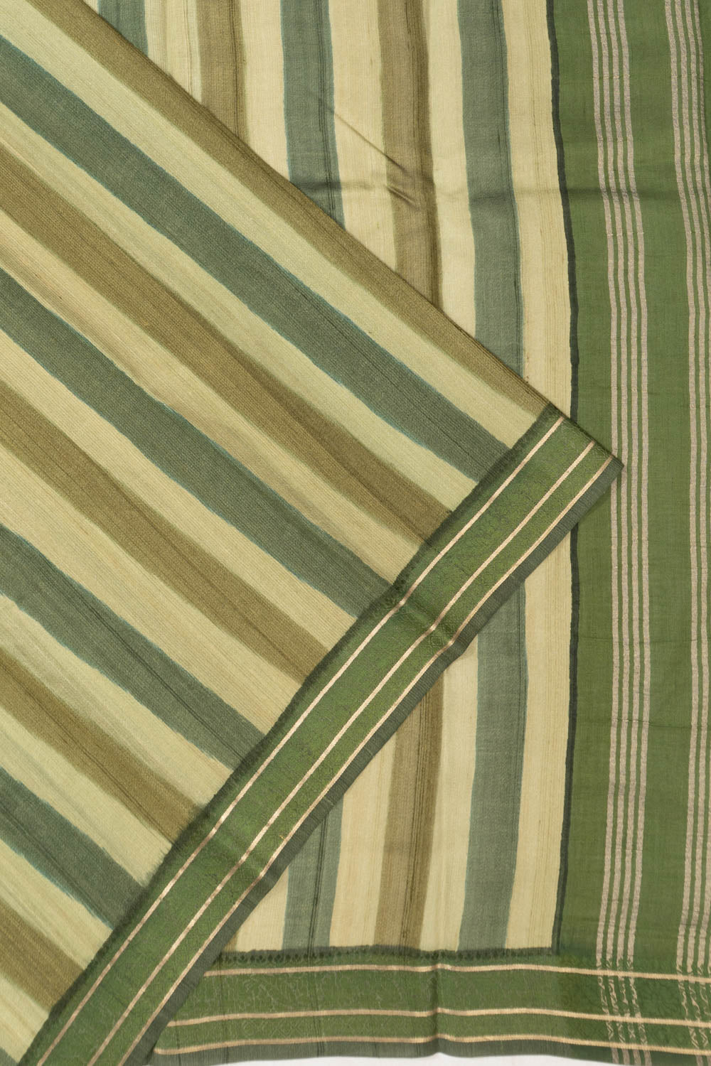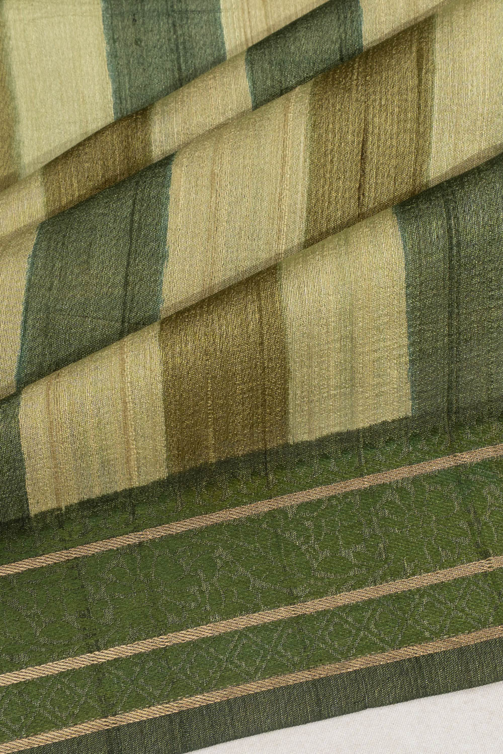 Green tussar silk with bold multicolor vertical lines print for a chic, modern look.