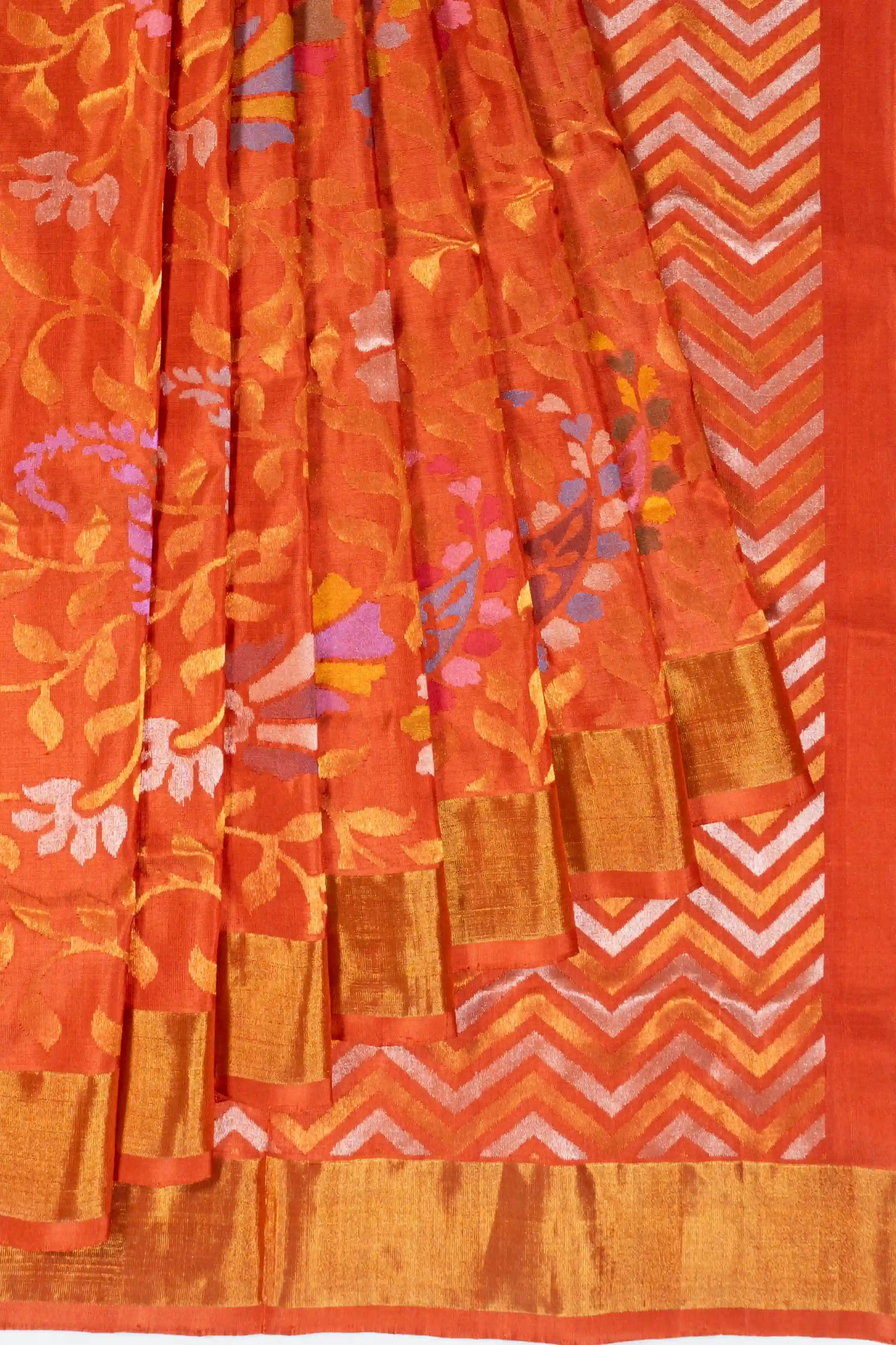 Uppada Silk All Over Jamdani Jaal Orange Saree