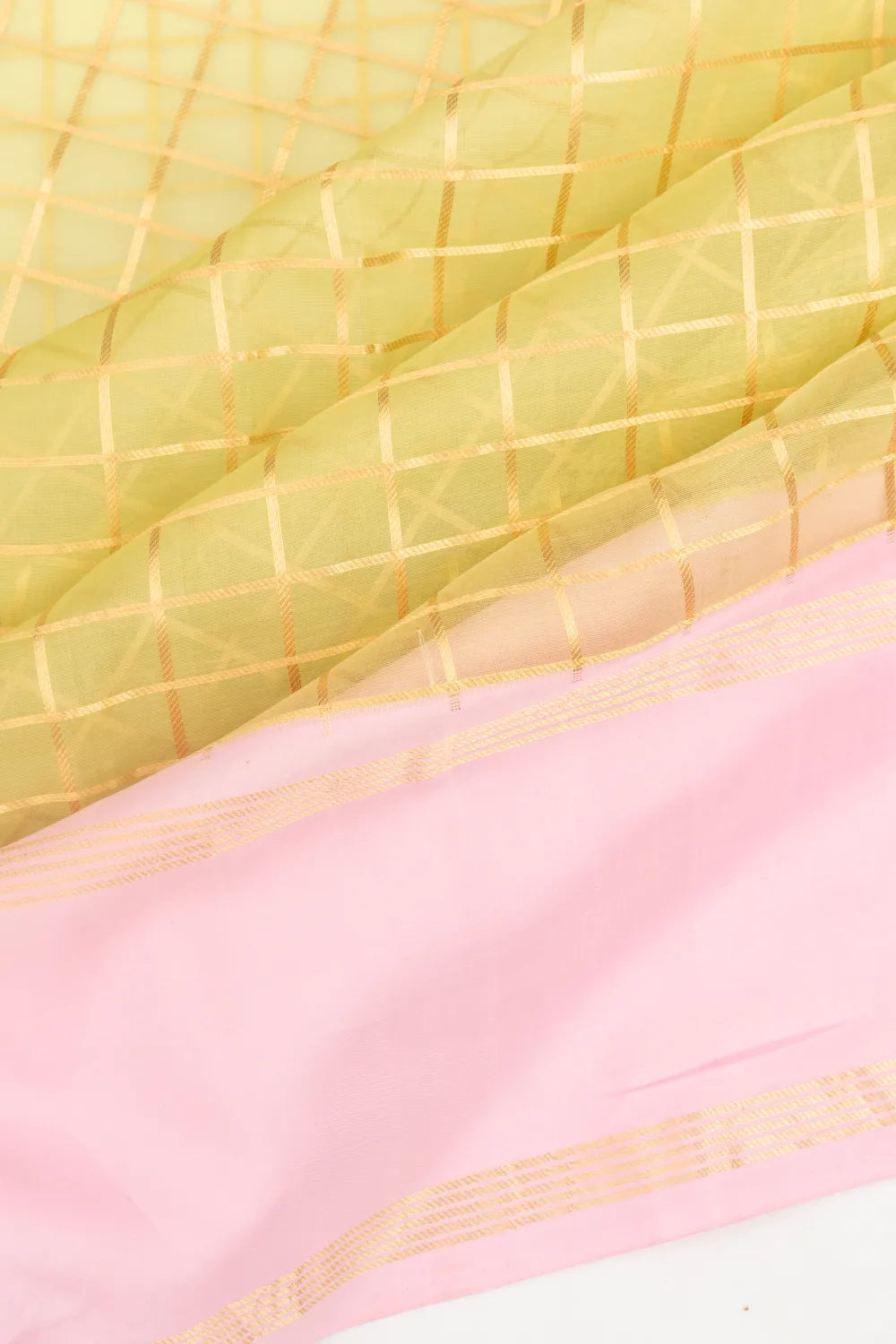 Vintage Banarasi Kora Organza Checks Pastel Green Saree