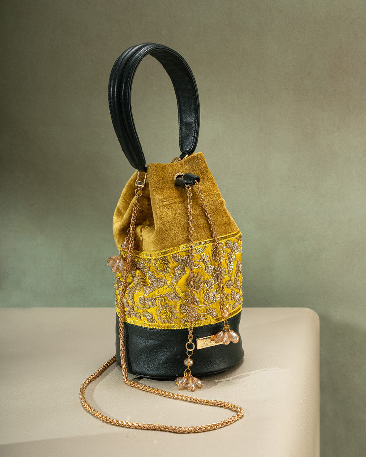 Made with intricate zardosi embroidery, this bag showcases Indian craftsmanship Perfect for special occasions and weddings Its user-friendly size length: 8,Width.