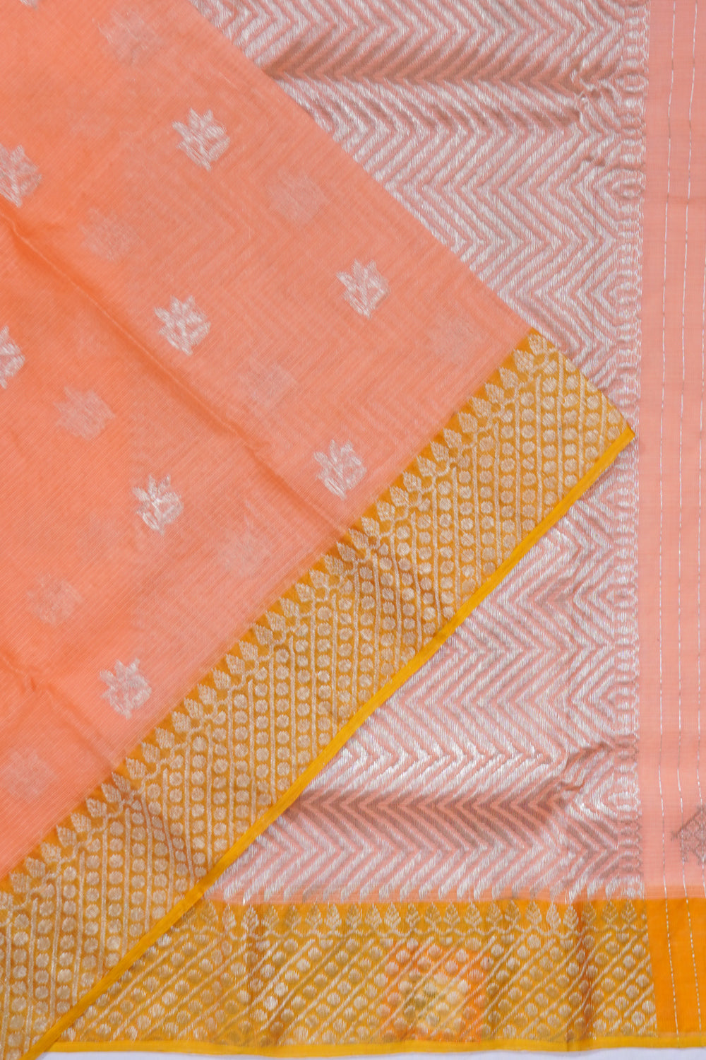 Zari Kota Cotton Butta Pastel Orange Saree, Body.